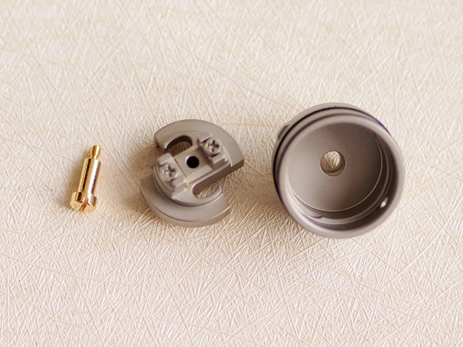 Внутри имеется ещё один сферический купол, образующий весьма маленькую испарительную камеру. В ней находятся две стойки, между которыми горизонтально устанавливается спираль. Ножки фиксируются прижимными пластинами и винтами под крестовую отвёртку. Обдувается намотка через круглое отверстие снизу. На периферии располагаются два резервуара для укладки ваты. Предустановленный сквонк-пин можно сменить на стандартный.