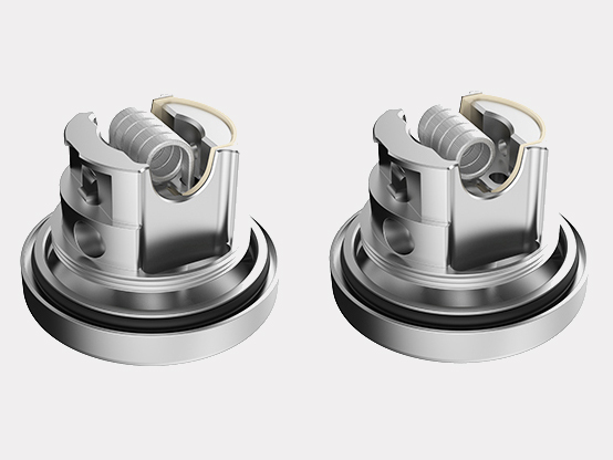 Дека представляет собой высокую рампообразную конструкцию с полукруглым ложем для одной спирали. Для установки намотки предусмотрено четыре слота, ножки следует расположить в них вертикально и зафиксировать винтами в стенках базы. Воздушный поток поступает сверху вниз и дополнительно сепарируется прежде чем попасть на спираль. Для подготовки намотки имеется специальный инструмент. С помощью расширенной колбы объём резервуара можно увеличить с 3,5 до 4,5 миллилитров.