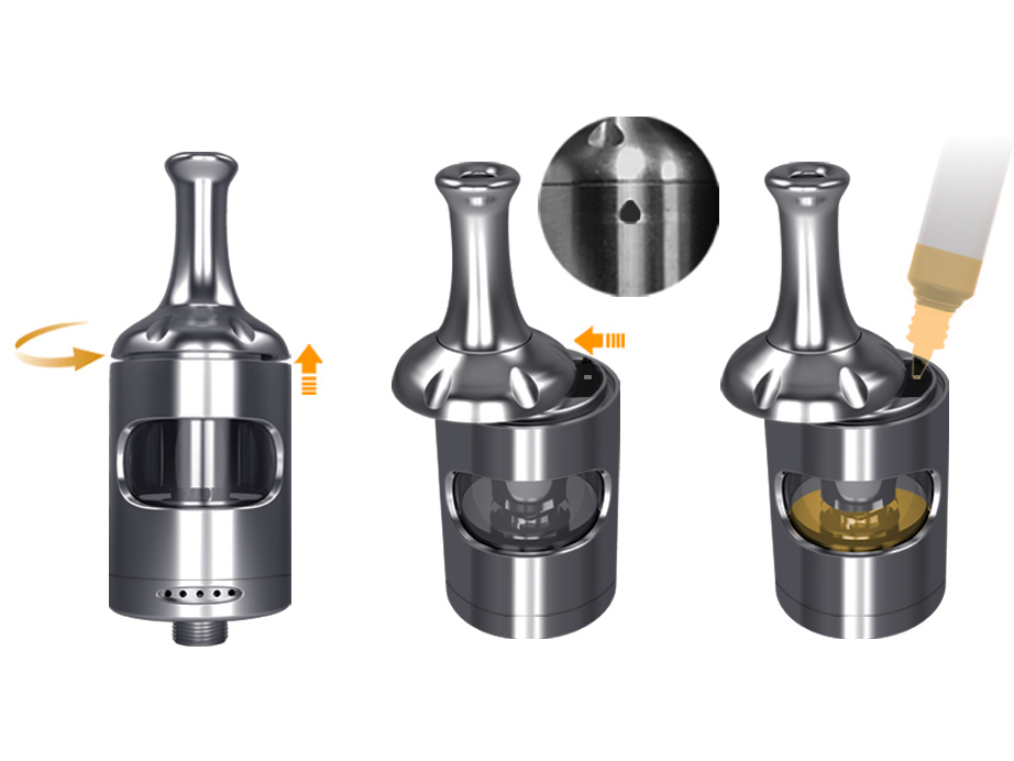 На верхушке комплектного бака Nautilus 2S красуется длинный, узкий дриптип из нержавеющей стали с 510-й посадкой. Топкеп с редкими насечками обзавёлся сдвигающейся крышкой, скрывающей заправочное отверстие. Стеклянную колбу защищает стальная юбка с парой овальных окошек. Объём резервуара составляет 2 либо 2,6 мл, в зависимости от версии. Работает девайс с двумя сменными испарителями на 0,4 и 1,8 Ом сопротивления. Обдув регулируется нижним кольцом и несколькими узкими отверстиями.