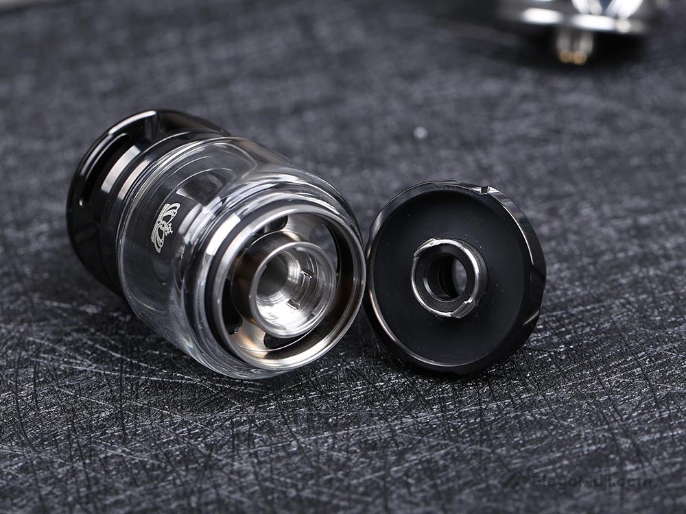 Бак способен функционировать с четырьмя видами фирменных испарителей, тем не менее, укомплектован он только парой двухспиральных вариантов, на 0,2 и 0,4 Ом сопротивления. Внутри базы находится запатентованная конструкция, осуществляющая самостоятельную чистку и избавление девайса от конденсата и последующих протечек. Обычная, прямая колба обеспечивает вместительность в 5 мл, однако и её при необходимости можно заменить расширенным стеклом на 6 мл.