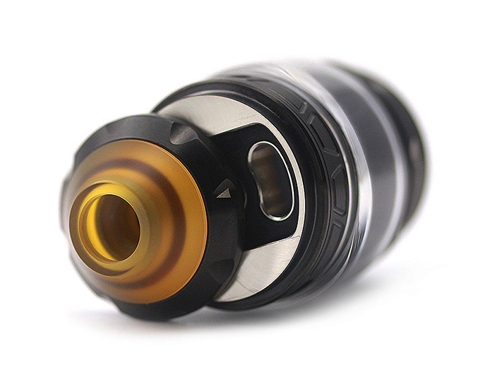Девайс имеет в запасе пару испарителей на сетках с сопротивлением в 0,2 и 0,16 Ом, присутствующих в предыдущем необслуживаемом баке — Manta Mesh Tank. Кроме того, они совместимы с NRG Tank и FV8 Baby Tank. Объём можно увеличить с 3 до 4 мл, установив расширенное стекло. Верхнее расположение воздухозаборных отверстий обеспечивает резервуар защитой от утечек жидкости.