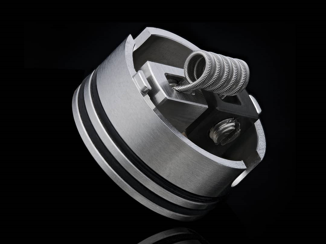 Под минималистичным куполом скрывается дека с двумя прямоугольными стойками, осуществляющими вертикальную фиксацию одной либо двух спиралей. Ножки устанавливаются сверху в просторные слоты и прижимаются по бокам винтами под прямую отвёртку, для доступа к ним, в бортах деки имеются прорези. Настройка затяжки происходит при повороте топкепа, разнообразие отверстий на его стенках позволяет отрегулировать обдув как в тугой, так и в свободной манере. Имеется сквонк-пин.