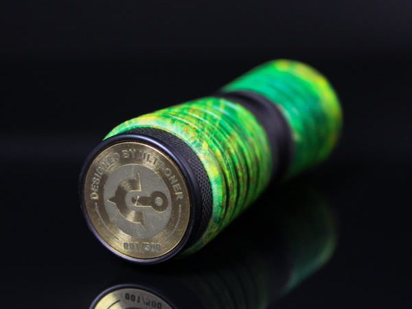 Работает механический мод без постоянного контакта, от аккумулятора формата 18650. Кнопка комплектуется четырьмя пружинами и самостоятельно подстраивает батарею под гибридный коннектор. Контактная группа — посеребрена. Напряжение на выходе достигает значения в 4,19 вольт.