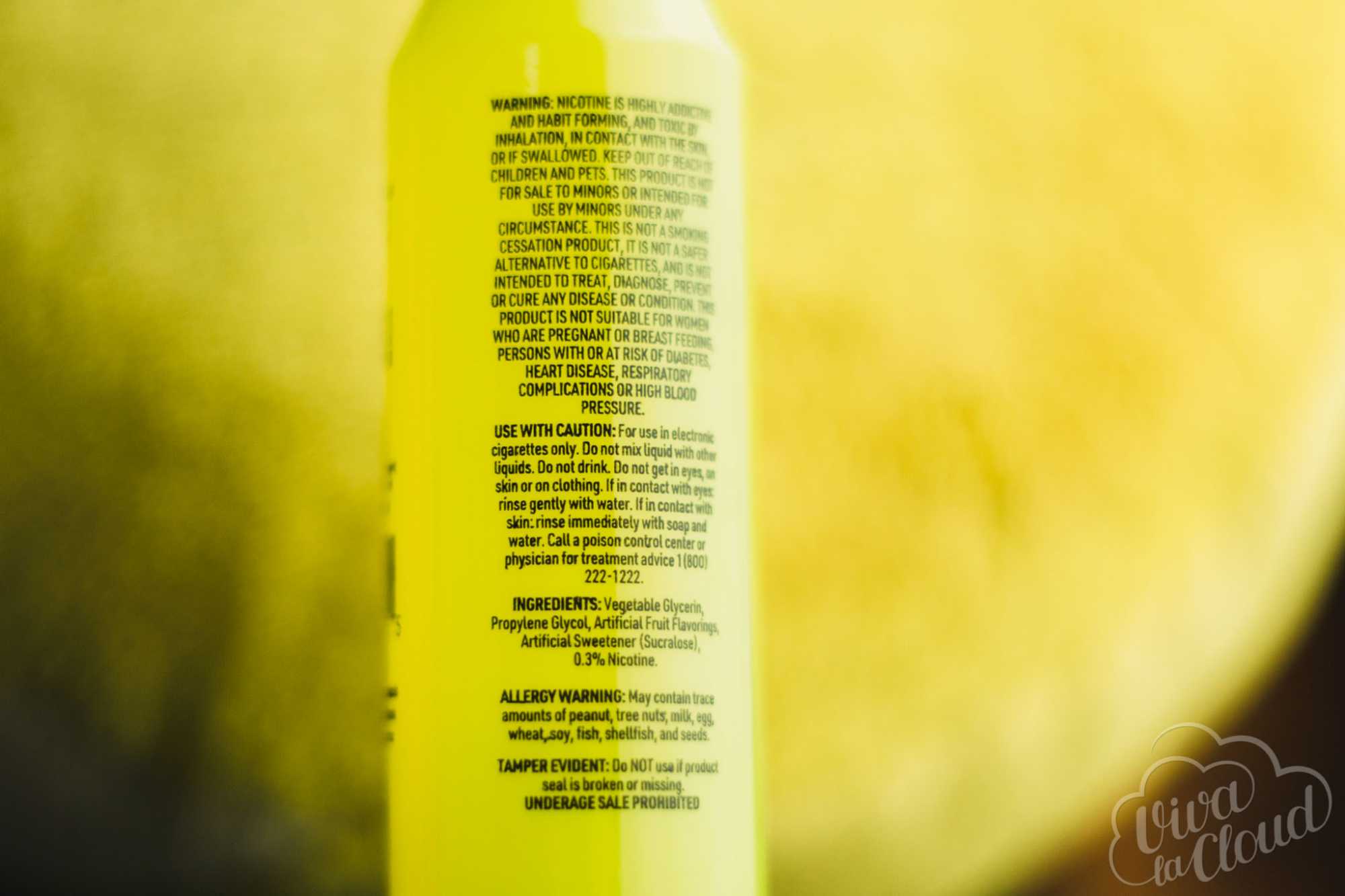 Жидкость приезжает в пластиковых «патронах» объемом 60 миллилитров. Вкусы отличаются друг от друга цветом. Крышки — с защитой от детей и контролем первого вскрытия. На лицевой стороне изображаются логотип линейки, названия и указания на объем, баланс и крепость никотина. Правее можно найти предупреждения, юридические данные и штрихкод. На противоположной стороне — стандартные для зарубежные производителей информационные блоки и состав. На флаконе присутствует наклейка с QR-кодом, пройдя по которому можно принять участие в розыгрыше от производителя.