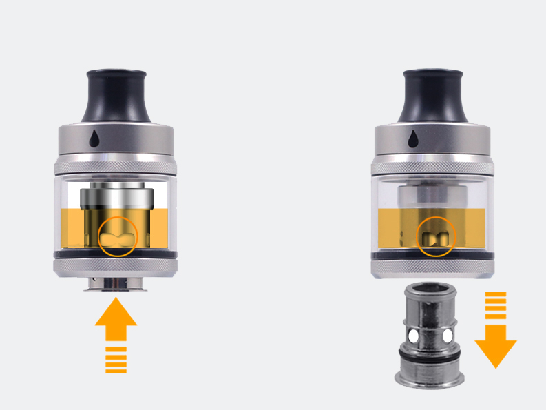 Одноимённый бак оформляется под цвет и габариты мода в зависимости от версии. Комплектуется двумя видами испарителей для «сигаретного» и свободного стилей парения, а также парой разнообразных дриптипов для аналогичных целей. Благодаря устройству внутреннего купола, извлекать испаритель можно при наличии жидкости в резервуаре. Заправочное отверстие находится под сдвигающейся крышкой с защитой от детей. Объём составляет 2 либо 3,5 мл. Нужная затяжка устанавливается при помощи вращающегося кольца.