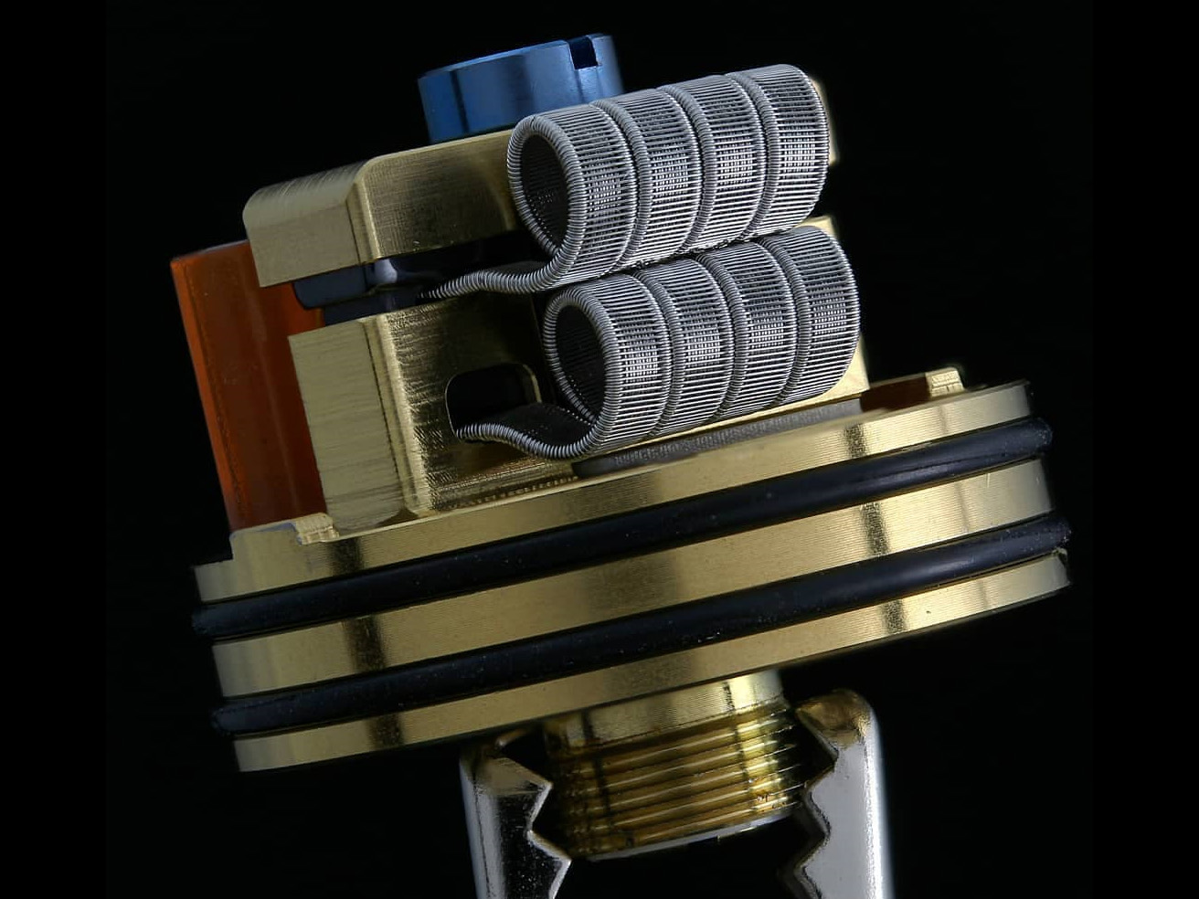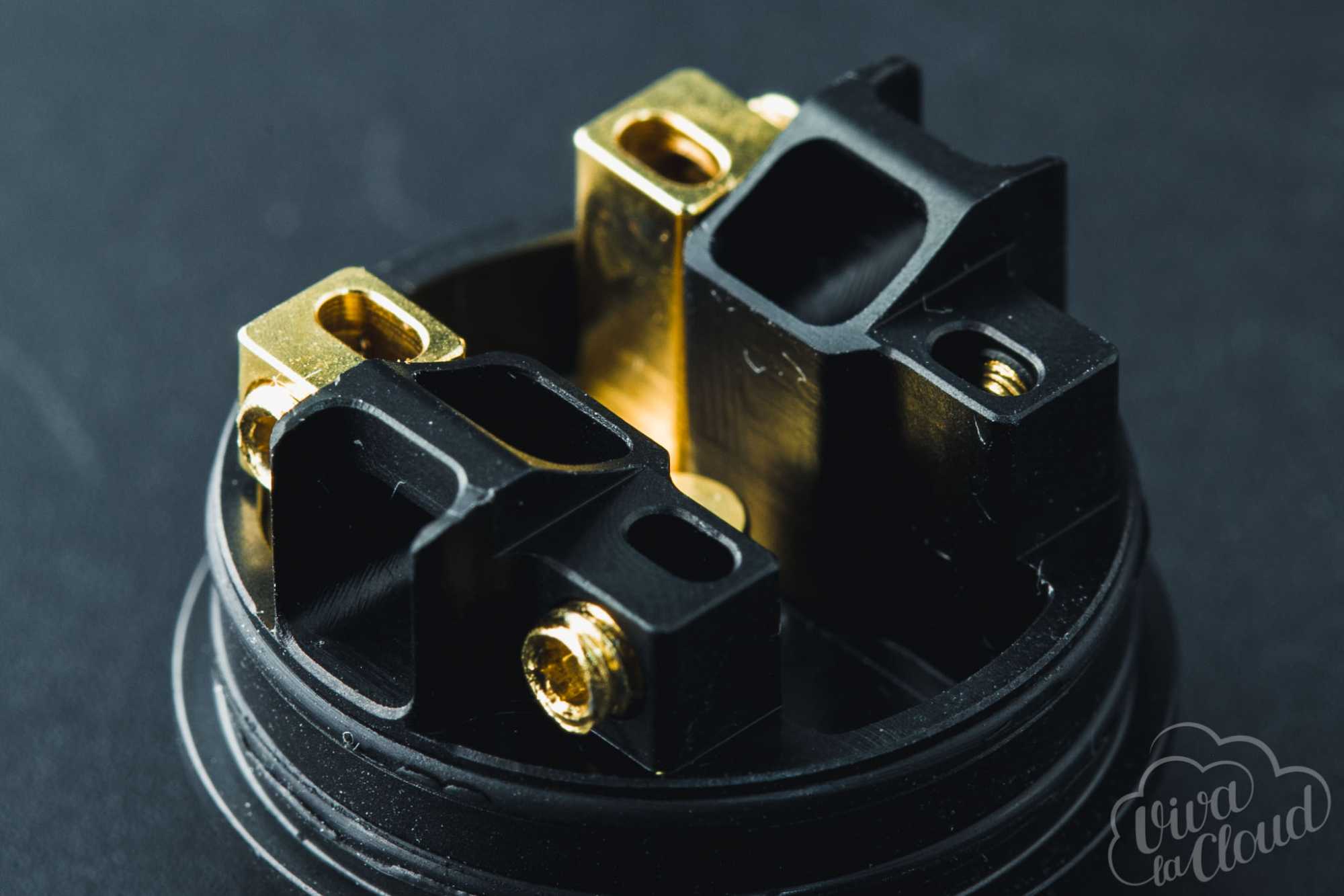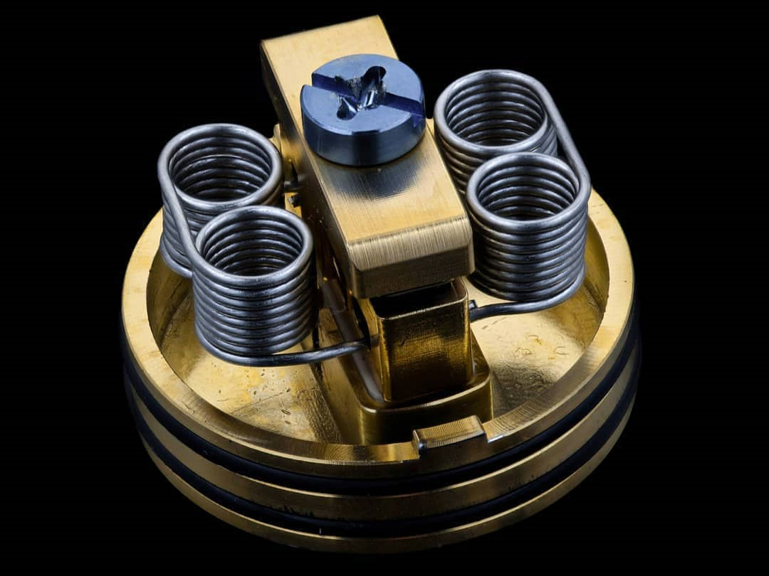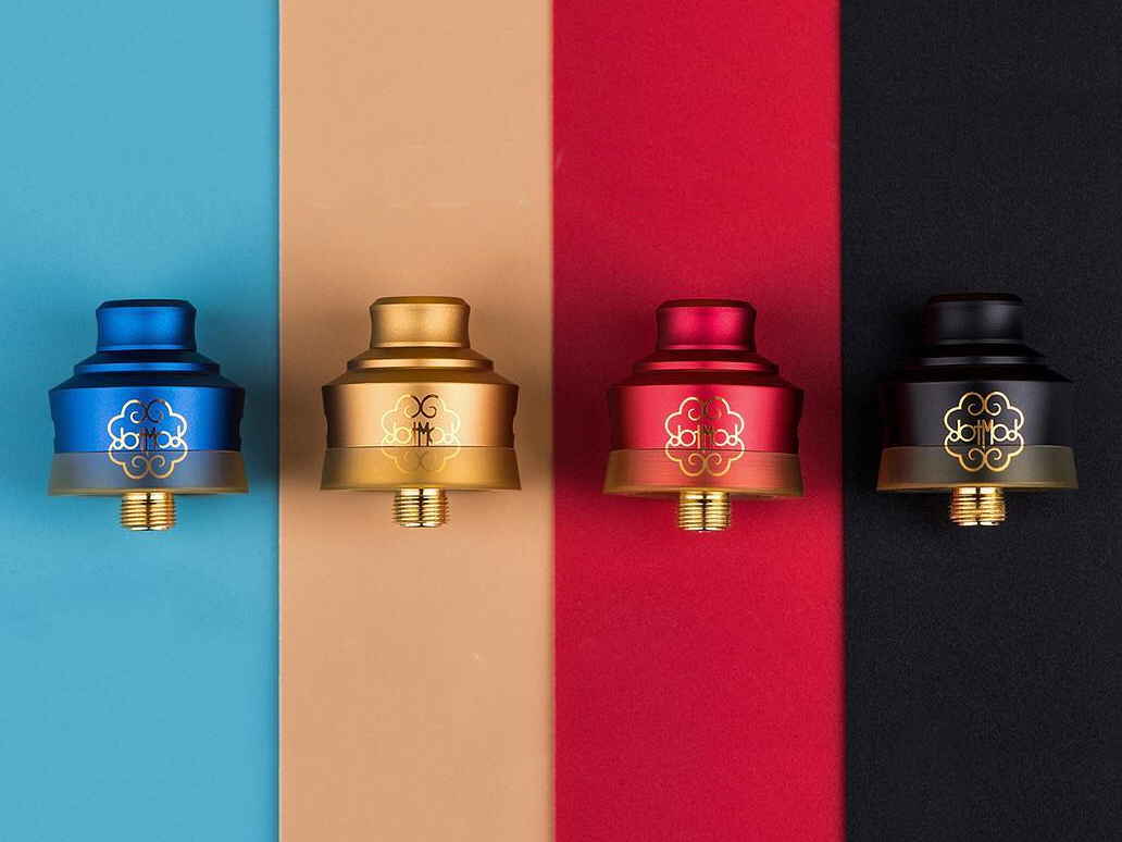 Dotmod вписались в ушедший год коренастой односпиральной дрипкой с богатым приданным. Металлический купол и аналогичный приталенный дриптип дополнили альтернативными вариантами из матового термопластика и Ultem-а. Вариативность посадочного диаметра обеспечили посредством съёмного кольца. Для идеальной фиксации спирали на латунной деке, предусмотрели набор вспомогательных инструментов, также не забыли и о сквонк-пине.