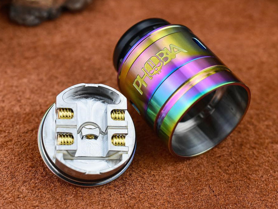 Vandy Vape очередной раз скооперировались с  Alex from VapersMD и явили миру новую фобию. Массивная дрипка обзавелась составным куполом и щедрым набором разнообразных дриптипов. Воздушные отверстия перекочевали от основания на бока топкепа и приняли форму решёток. В конструкцию базы не стали вносить существенных изменений, она по прежнему фиксирует одну либо две спирали без помощи стоек и остаётся мало отличимой от первой версии.