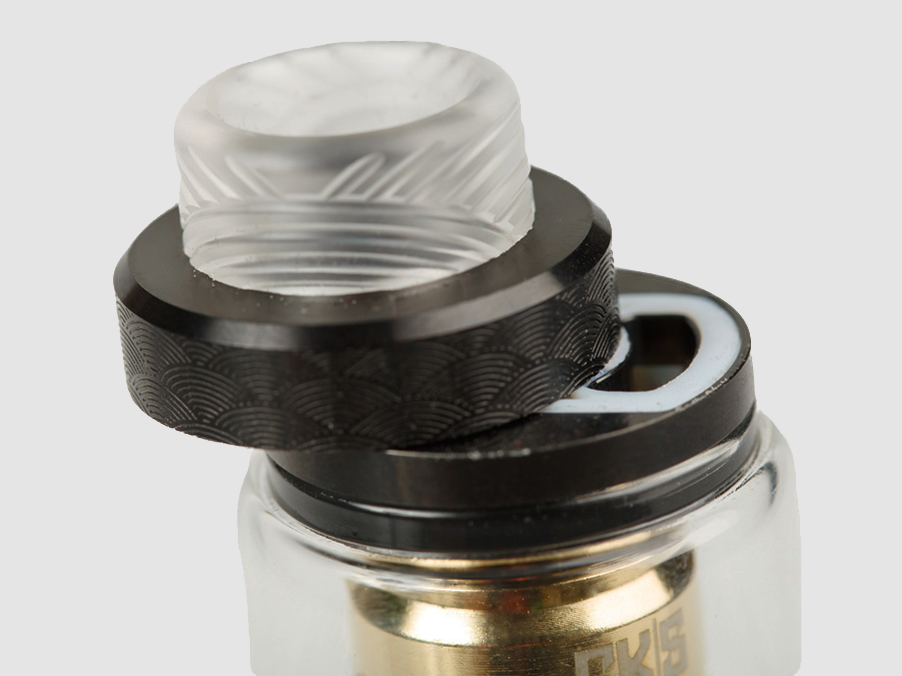 Для бака предназначается четыре разнообразных «сеточных» испарителя, тем не менее, комплектом предусматривается только два — с одиночной сеткой на 0,15 Ом и двойной на 0,2 Ом. Отдельно можно докупить вариант с тройной намоткой, рассчитанный на высокую мощность и экземпляр с сопротивлением в 0,12 Ом, оптимизированный для работы с термоконтролем. Объём увеличивается с 4 до 6 мл благодаря дополнительной широкой колбе. Заправка осуществляется сверху. За регулировку затяжки отвечает вращающееся кольцо с двумя широкими отверстиями.