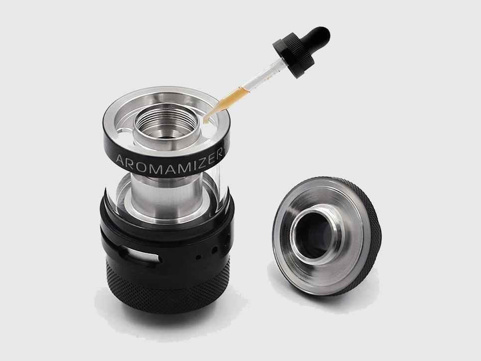 11 марта компания Steam Crave представила в инстаграме девайс Aromamizer Lite RTA. Стальному баку дали лаконичную, но нетривиальную конструкцию — вездесущее кольцо обдува установили не на дне, а чуть ниже центральной оси, топкеп и основание дополнили мелкой накаткой. На скручивающейся крышке разместили приталенный дельриновый дриптип, внутри спрятали утопленную площадку с двумя отверстиями заправки. Предусмотрено два варианта окраса — чёрный и металлический.