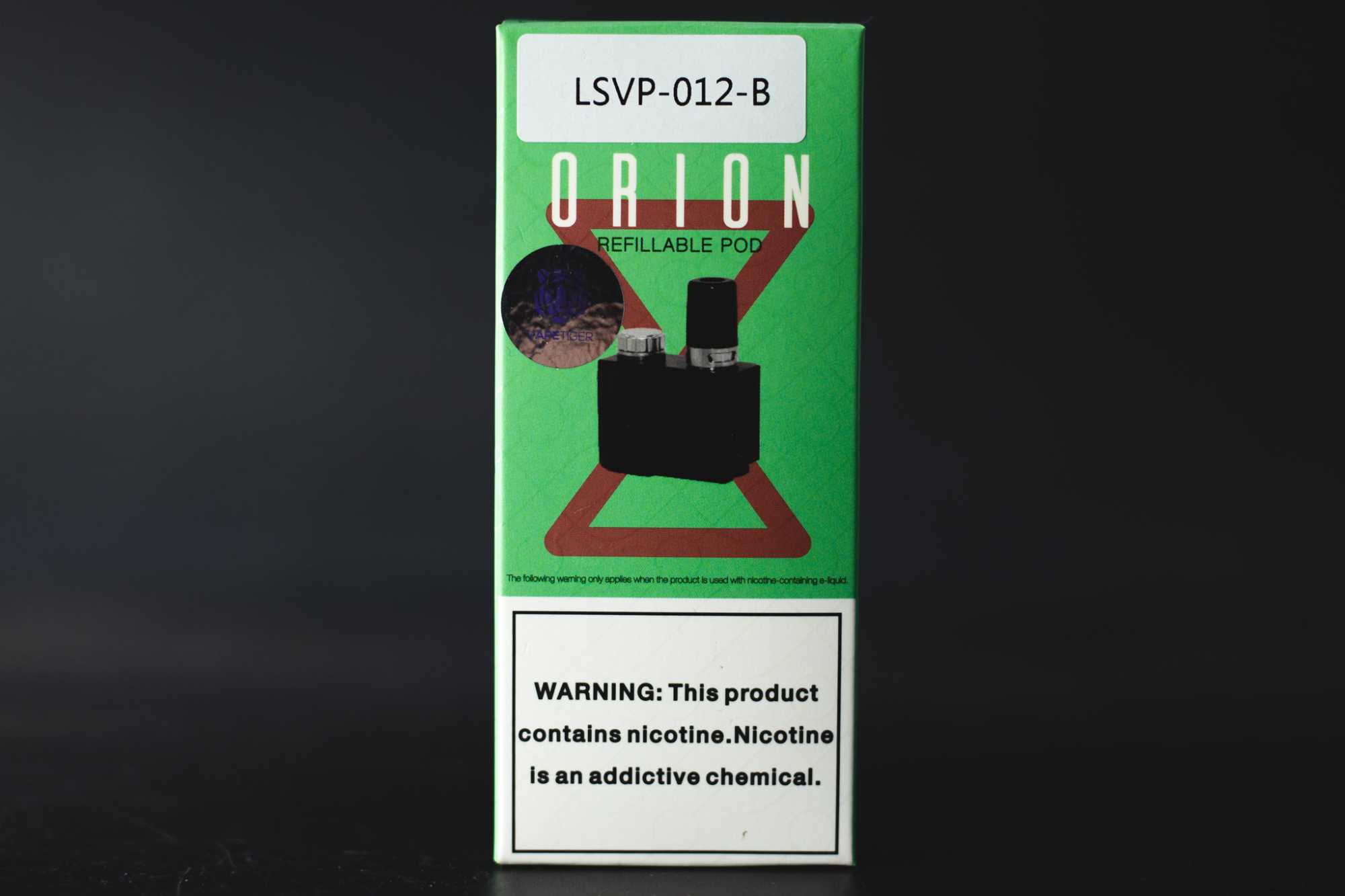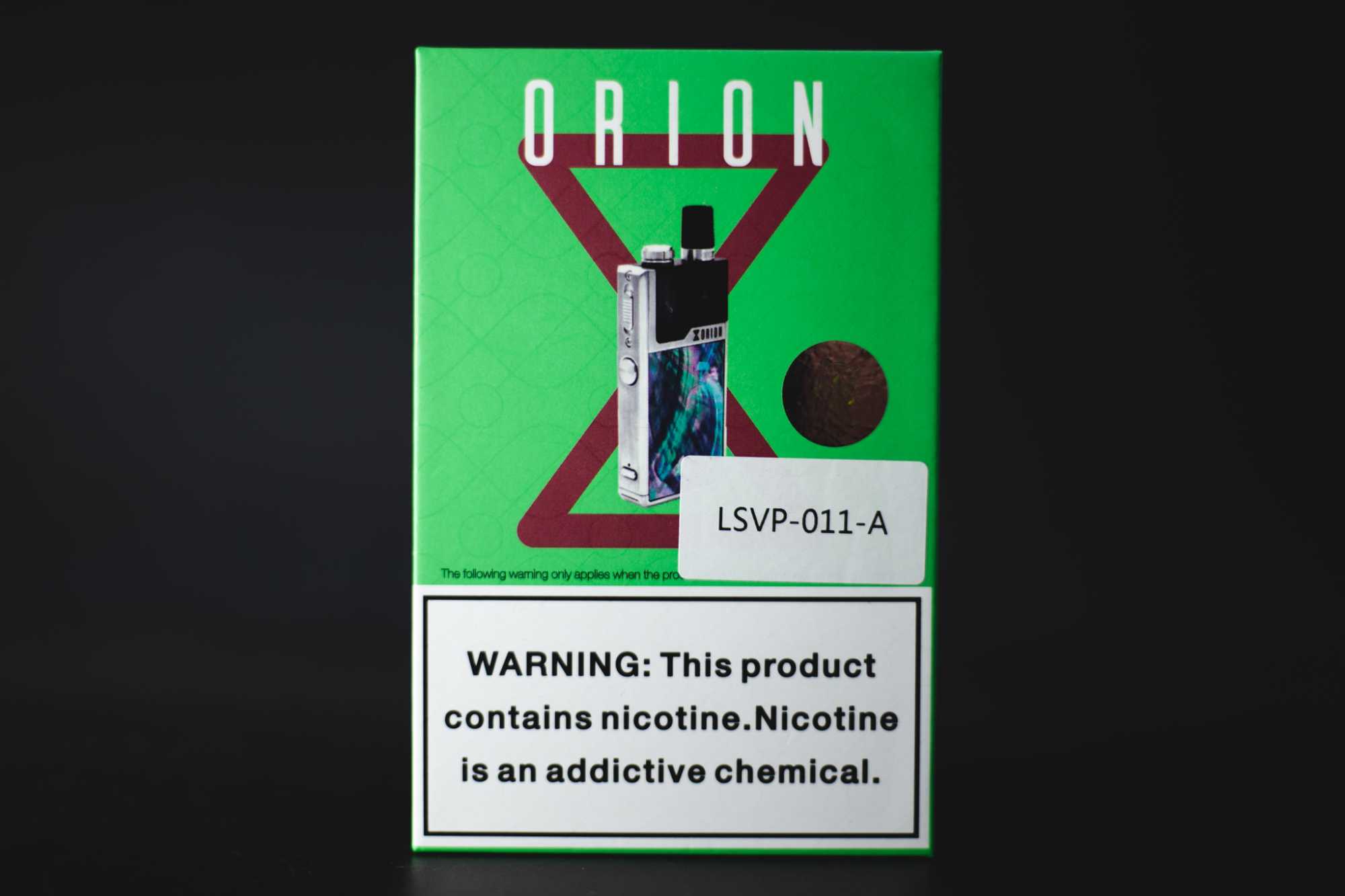 Девайс приезжает в плотной картонной коробке зеленого цвета. Спереди — изображение мода и предупреждение о том, что никотин — не самая полезная штука. На «вертикальных» гранях можно — лого производителя. На боковых стенках — пометки про DNA-чип и функцию Replay. На обратной стороне коробки — перечень содержимого, ссылки на соцсети производителя, юридические данные и маркировки. Рядом — штрихкод и отметка раскраски.