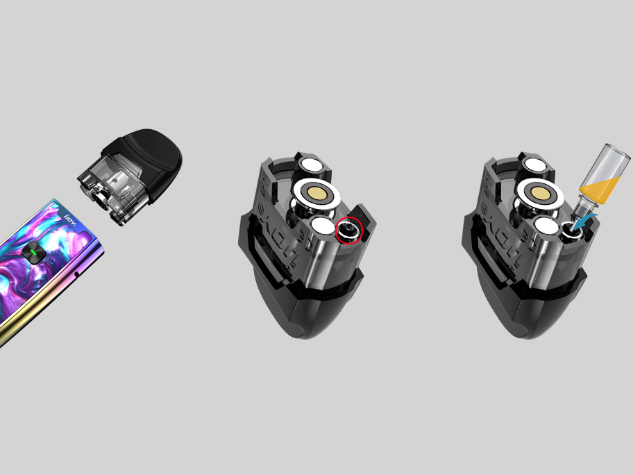 Приплюснутый картридж фиксируется магнитным коннектором и работает со сменными испарителями из линейки AI EVO, в её состав входят как «спиральные», так и «сеточные» экземпляры. Бак обладает нестандартной ёмкостью в 2,8 мл, заправочное отверстие можно найти на дне резервуара. Максимальная мощность достигает значения в 20 ватт, активация осуществляется нажатием кнопки. Работает устройство от аккумулятора с запасом в 1100 мАч.
