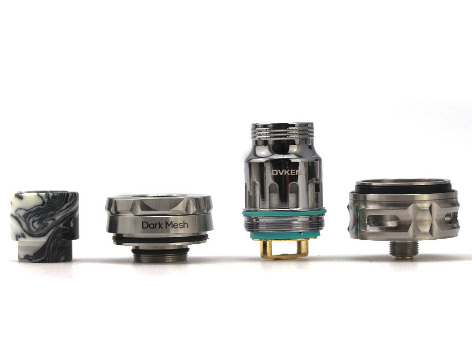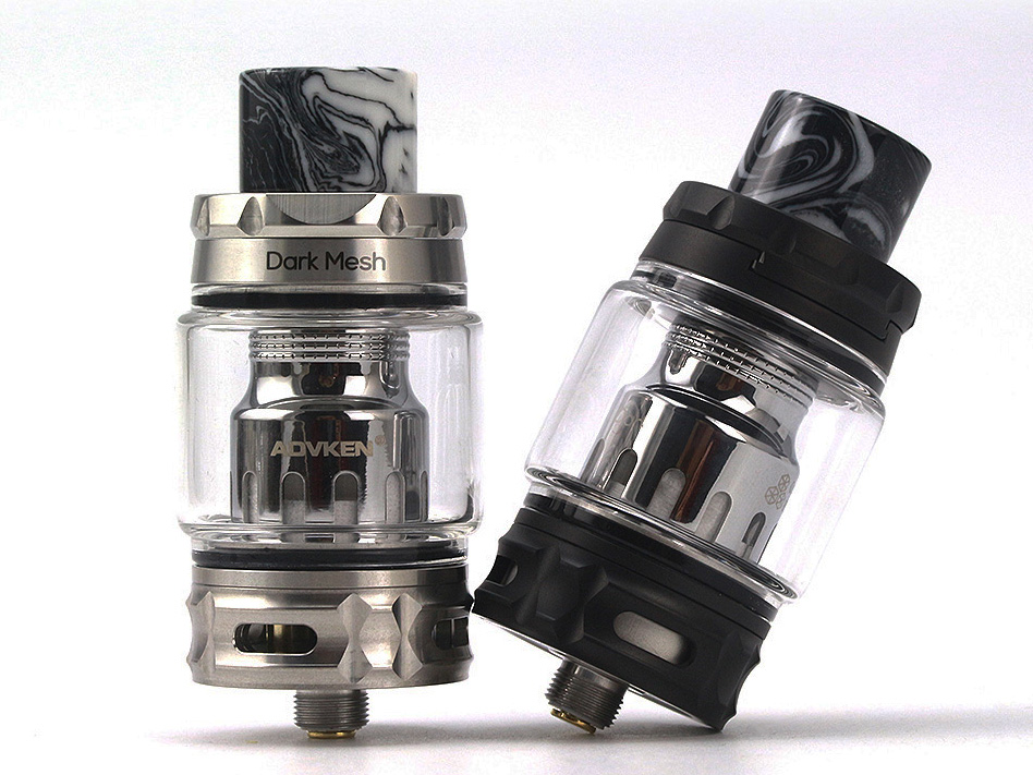 12 марта компания Advken представила на странице в фейсбуке девайс Dark Mesh Tank. Необслуживаемый бак реализовали в «традиционной» конструкции, без внутреннего купола. Выбирать предложили из двух вариантов окраса — полированного стального и матового чёрного. Гранёный топкеп снабдили сдвижным механизмом и увенчали контрастным «эпоксидным» дриптипом с 810-й посадкой. К основанию пристроили рельефное кольцо с четырьмя воздухозаборными отверстиями.