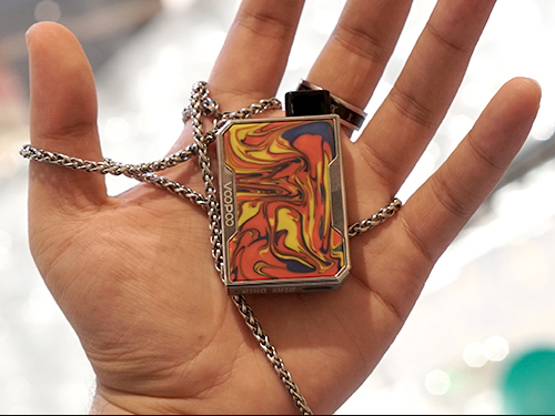 10 апреля компания Voopoo представила в инстаграме all-in-one набор — Drag Nano Pod Kit. Устройство получило корпус в стиле небезызвестного Drag, но со значительно меньшими габаритами и без кнопок. Основой для каркаса выступил алюминиевый сплав. Торец по традиции украсили разноцветной эпоксидной смолой, доступной в семи расцветках. На противоположной стороне сделали крупный логотип. Micro-USB порт и маленький индикатор разместили на дне. Скошенный верхний угол снабдили петлёй для цепочки.