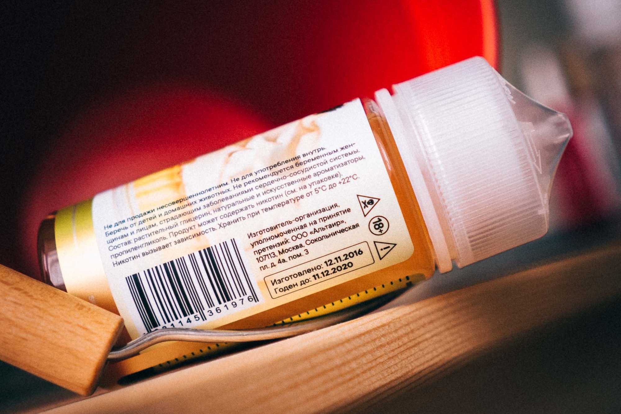 Жидкость приезжает в оригинальных Chubby Gorilla V3 объемом 100 миллилитров. Крышка имеет защиты от детей и первого вскрытия. Стиль оформление зависит от выбранного вкуса. На флаконах — фольгированные этикетки с матовым покрытием. В центре изображается «логотип» вкуса и пишутся названия. Левее можно найти ссылки на сайт и группы производителя, а также фирменную шкалу, отображающая объем оставшейся жидкости. На противоположной стороне можно найти состав, предупреждения и юридические данные. Там же — срок годности, маркировки и штрихкод.