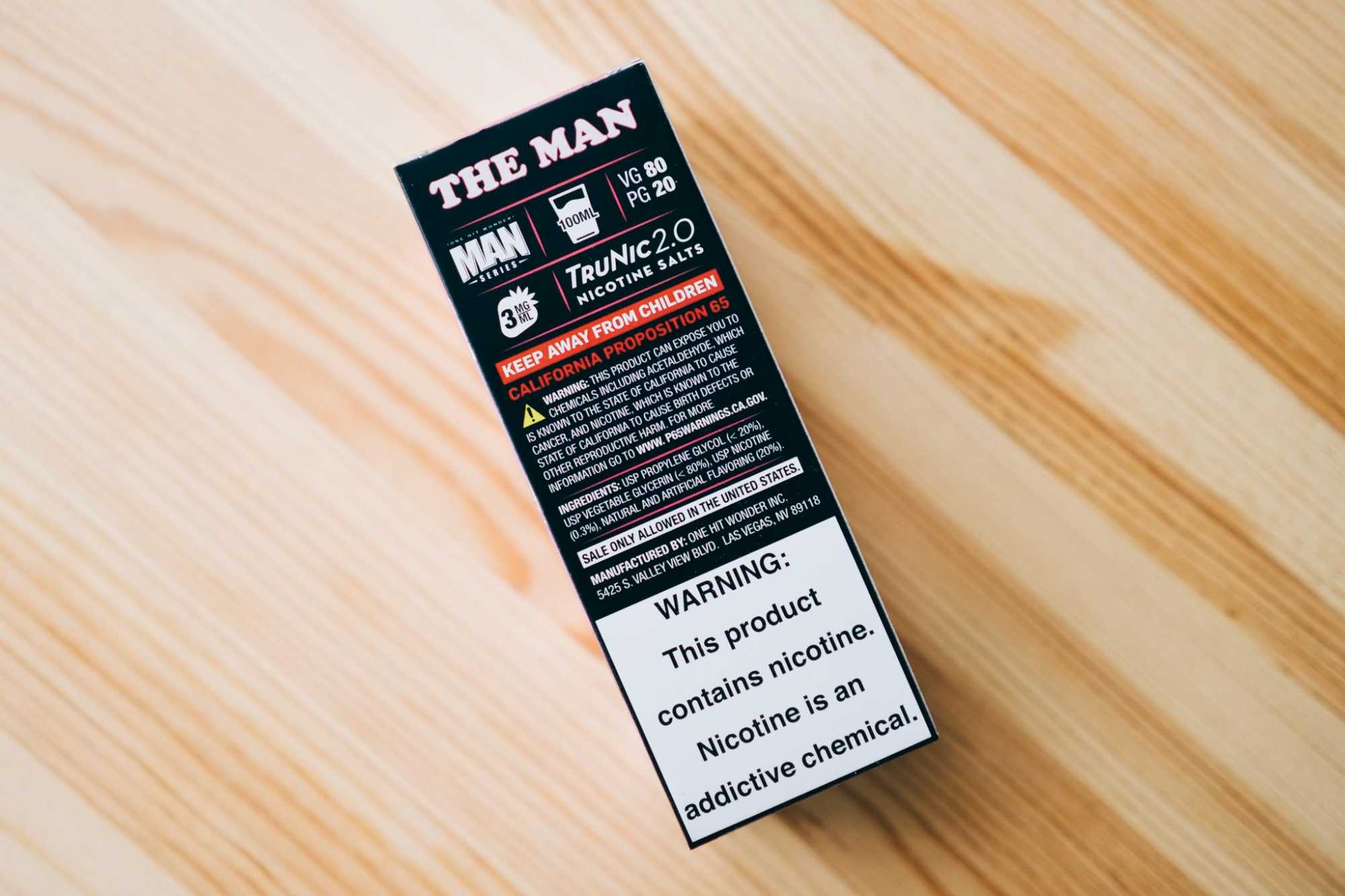 Жидкость приезжает в картонных коробках. Цвет оформления зависит от выбранного вкуса. Некоторые элементы выделяются при помощи фольгирования. На лицевой стороне — логотип сочетания, а также названия микса и серии. Ниже — крупное предупреждение о наличии никотина. Правее можно найти описание вкуса, а левее — указание на крепость и тип никотина и объем. На обратной стороне пишутся стандартные для американских производителей предупреждения, юридические данные. На дней — штрихкод и ссылки на социальные сети создателей.