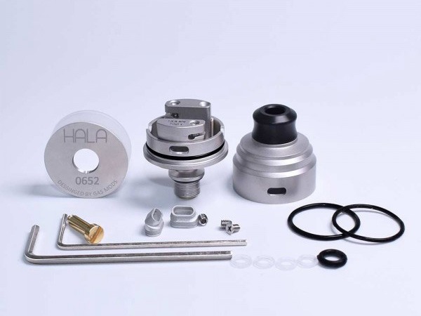 Компания Gas Mods выпустила Hala BF RDTA. Это гибридный бак с комплектом сменных воздушных каналов для одной спирали, резервуаром на 2 мл и сквонк-пином.