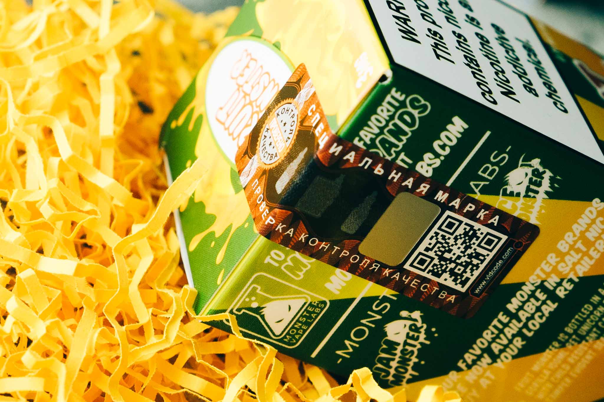 Fruit Monster ничем не уступает в оформлении остальным линейкам от производителя. Это такие же яркие и информативные упаковки и качественные флаконы. На этикетках есть вся необходимая информация. Верификационная марка надежно защищает покупателя от вскрытия и клонов.