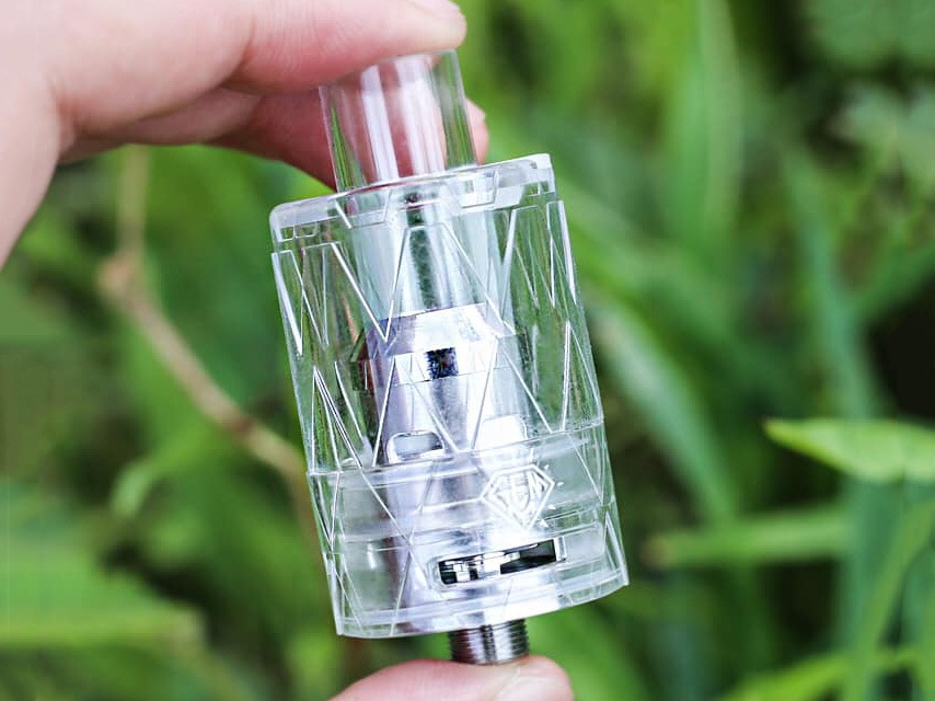 Сменный бак состоит из пластикового корпуса, окрашенного под цвет мода и необслуживаемой стальной базы со встроенным испарителем на вате из чайного волокна. Сопротивление намотки в комплектных экземплярах составляет 0,2 и 0,15 Ом, помимо того, можно приобрести альтернативные варианты с другой формацией на 0,12 и 0,5 Ом. Обычный комплект предусматривает резервуары на 4 и 5 мл, в европейской версии объём ограничится двумя миллилитрами. Заправочное отверстие находится на верхней площадке, под силиконовой заглушкой. Снизу располагается кольцо для настройки обдува.