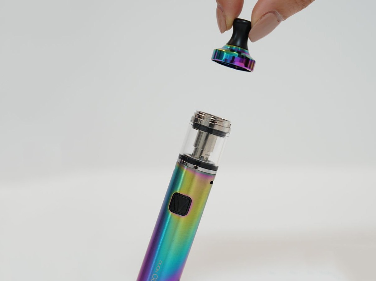 Интегрированный бак поддерживает три вида испарителей из серии Cosmo, тем не менее, стандартный набор включает только один экземпляр со спиралью на 1,6 Ом. Скручивающийся топкеп комплектуется приталенным 510-м дриптипом из дельрина. Под съёмной крышкой находится углублённая заправочная площадка, защищённая от детей посредством силиконовых вставок. В резервуар можно налить 2 мл жидкости. Регулировка обдува отсутствует.