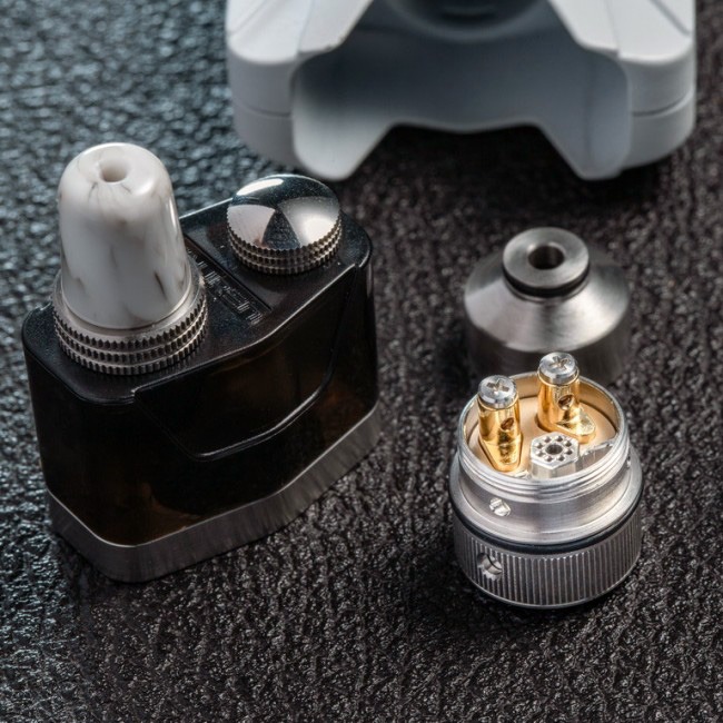 Съёмный магнитный картридж реализуется в двух версиях — первая поддерживает два вида сменных «сеточных» испарителей, вторая использует обслуживаемою двухстоечную базу под одну спираль. Обе вариации обладают объёмом в 2 мл и кольцом для настройки затяжки. На верхней площадке резервуара располагаются скручивающаяся заправочная крышка и 510-й дриптип из эпоксидной смолы в цветах корпуса. Выходную мощность можно регулировать в пределах от 5 до 25 ватт при помощи минималистичного одноцветного интерфейса. Диапазон сопротивления составляет от 0,1 до 3,0 Ом. За питание отвечает встроенная батарея на 1000 мАч.