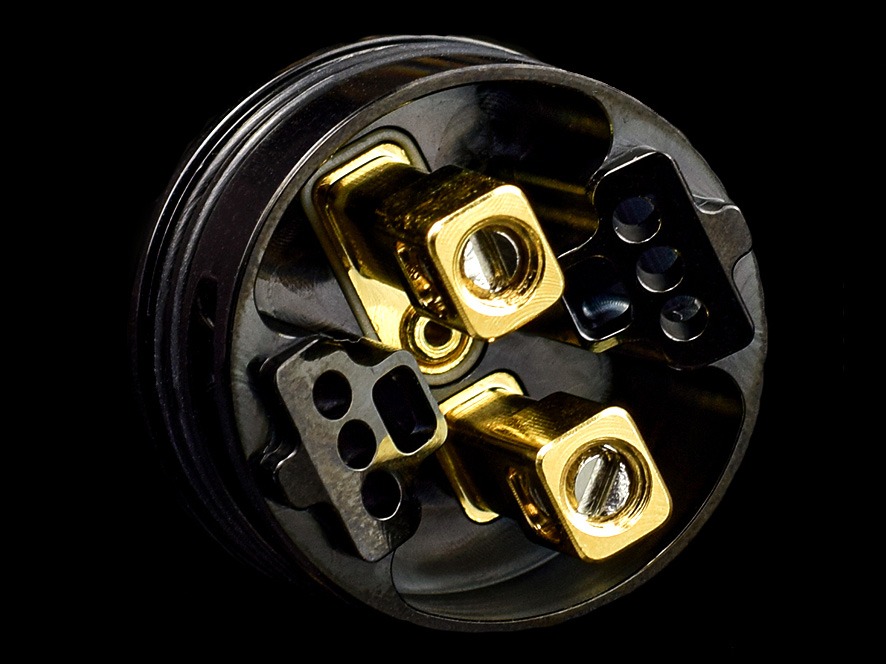 Под монолитным куполом скрывается массивная база с глубокой ванночкой и двумя позолоченными стойками для фиксации пары спиралей. Ножки располагаются горизонтально и прижимаются сверху винтами с прямыми шлицами. Воздух подаётся на намотку под небольшим углом, снизу, через перфорированные боковые платформы, встроенные в стенки базы. Интенсивность обдува регулируется поворотом юбки относительно деки. Предустановленный сквонк-пин можно заменить на обычный.