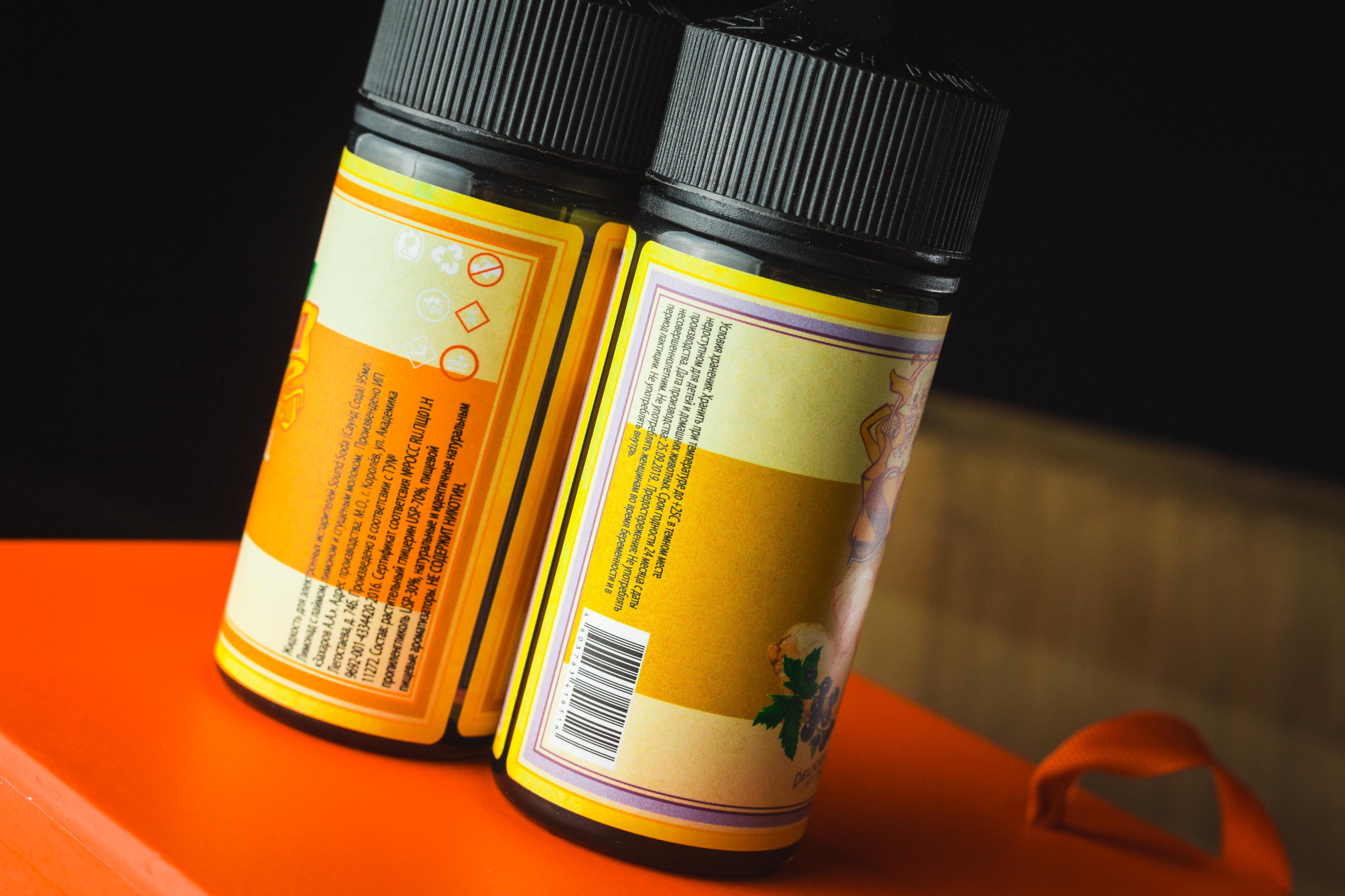 Оформление Sound Soda полностью соответствует всем имеющимся стандартам. Миксы довольно легко отличаются друг от друга, флаконы не протекают, а на этикетках есть вся необходимая покупателю информация. У потребителя не появляется вопросов про направленность миксов после первого же взгляда на миниатюру в центре.