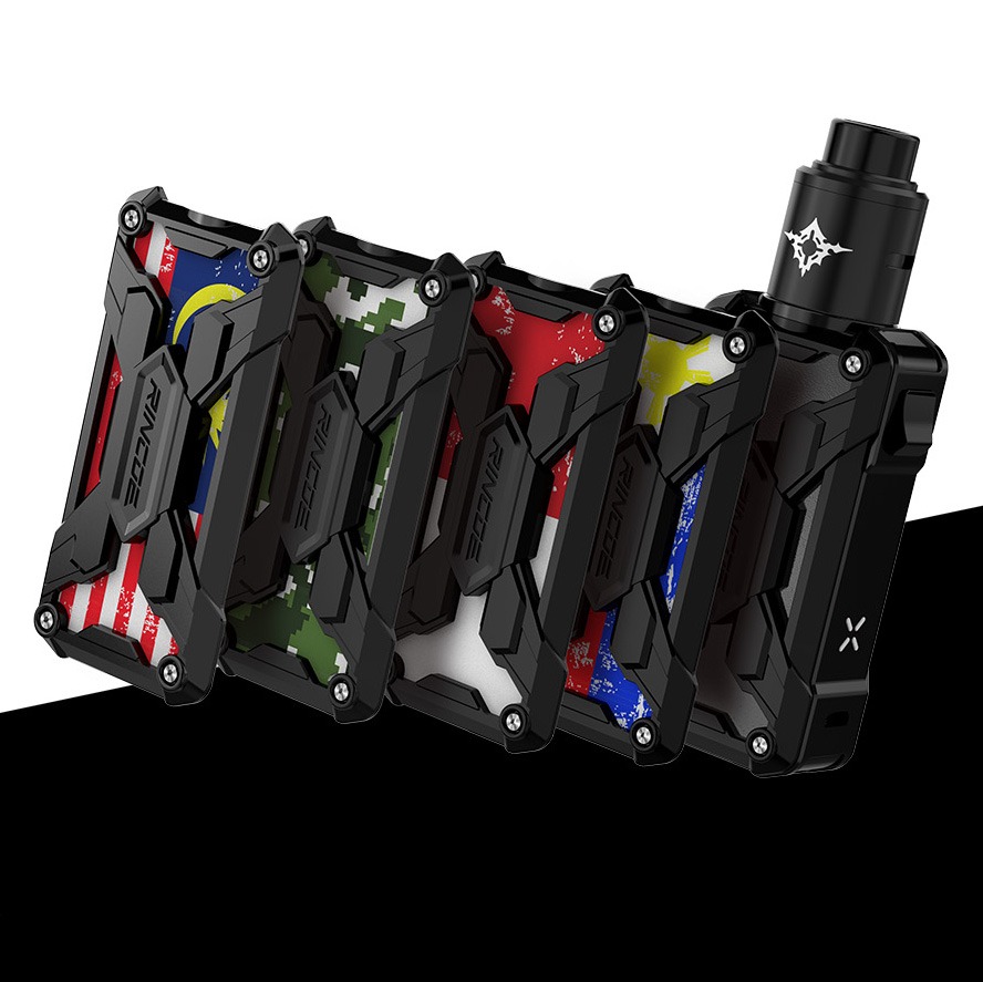 4 ноября компания Rincoe представила на странице в фейсбуке стартовый набор — Mechman Nano RDA Kit. Боксмод получил добротный пластиковый корпус, обшитый противоударным каркасом и кожаными вставками. На широких торцах, при помощи шестигранных винтов зафиксировали сменные панели, доступные в пяти разнообразных вариациях. Верхушку узкого фасада заняла эргономичная кнопка fire, снизу расположились крестообразный индикатор и USB-порт. Противоположную сторону дополнили рифлёной поверхностью для надёжного хвата. Дно перфорировали вентиляционными отверстиями.