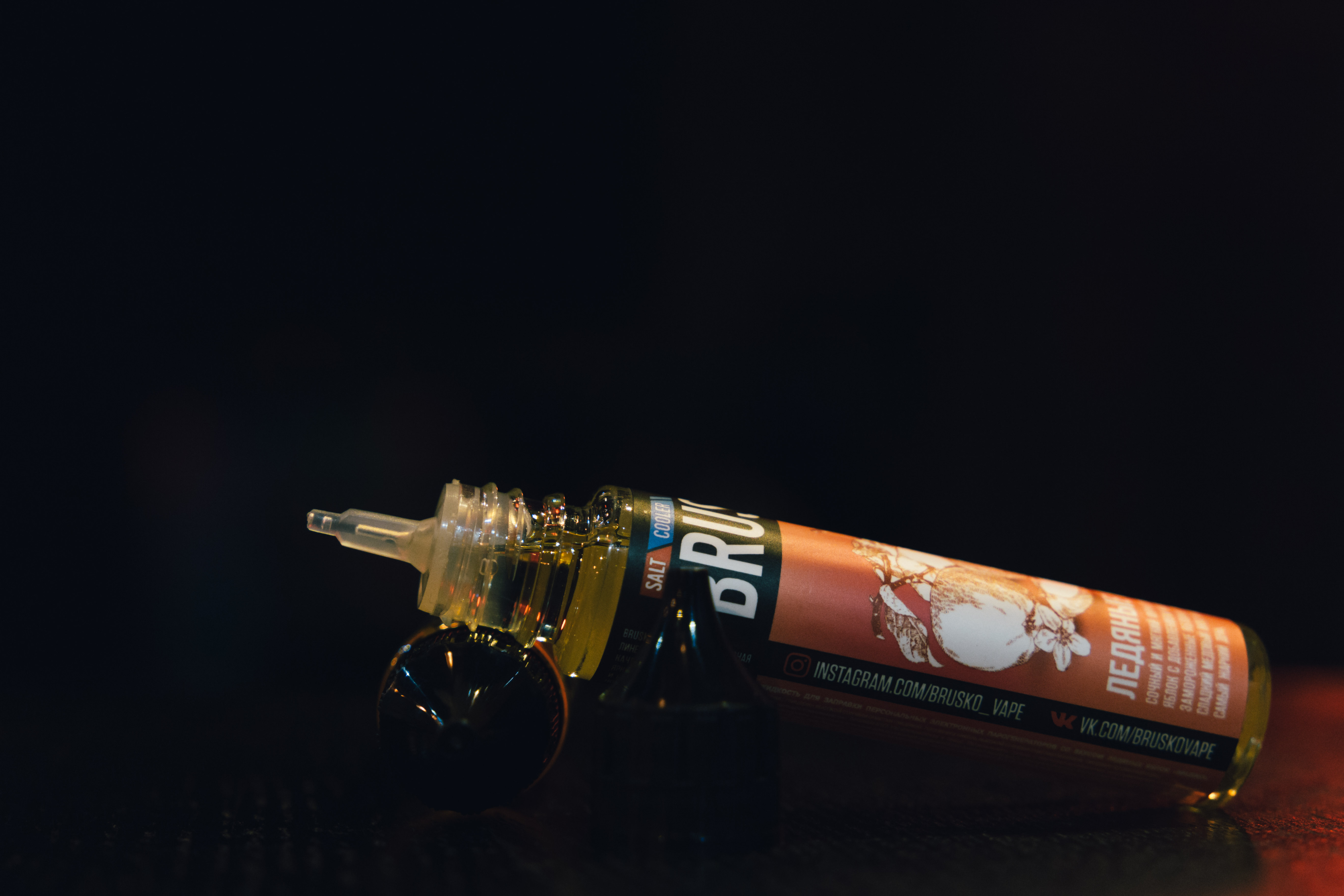 Brusko поставляется в мягких пластиковых флаконах объемом 30 мл. Пленочные матовые этикетки имеют цвет оформления в зависимости от выбранного вкуса. На лицевой стороне содержится изображение и название микса с описанием. Сверху написано название линейки, а в жидкостях с кулером имеется соответствующая пометка. Справа – объем, баланс, предупреждения, содержание никотина, срок годности, штрихкод, данные о производителе с QR-кодом, ведущим на сайт. На противоположенной стороне имеются ссылки на соцсети, состав и меры предосторожности с условиями хранения.