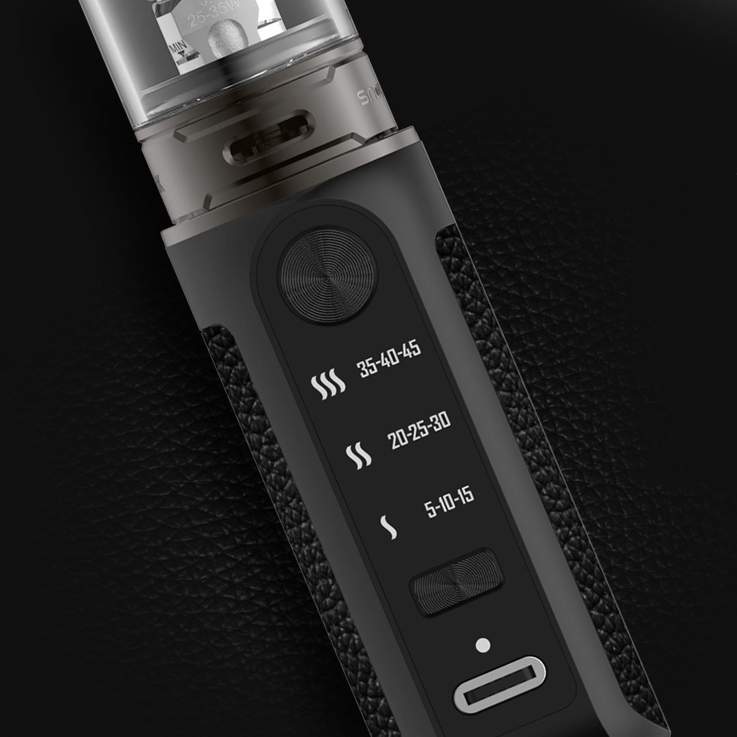 За цинковыми стенками скрывается плата IFV Smart Chip, обеспечивающая безопасность, вариативную мощность от 5 до 45 ватт и возможность переключения в альтернативный режим Smart Curve. Установленный режим работы отображается минималистичной панелью индикаторов. Для питания потребуется батарея формата 18650, через USB-порт её можно зарядить током в 2А.