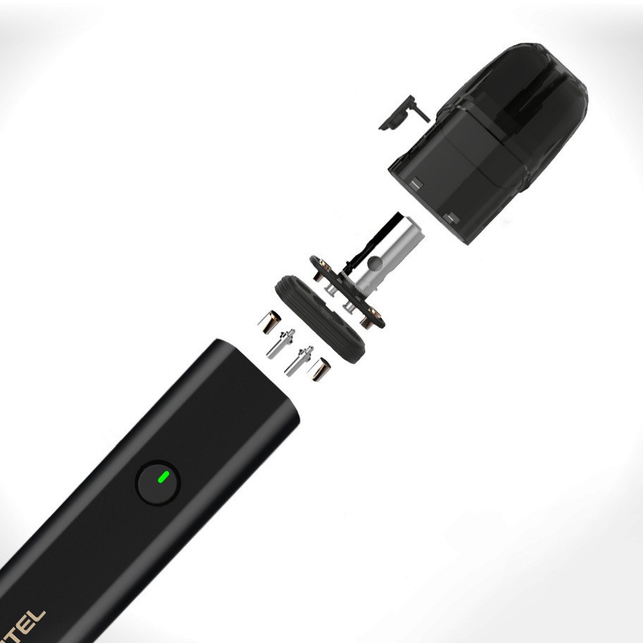 Устройство питается от батареи на 850 мАч и может выдавать от 8 до 13 ватт мощности в зависимости от оставшегося уровня заряда. Осуществлять зарядку следует через USB Type-C током в 1А. Активировать девайс можно не только кнопкой, но и затяжкой. Сменный картридж комплектуется магнитным коннектором и интегрированным испарителем с сопротивлением в 1,2 Ом, оптимальном как для обычных, так и для солевых жидкостей. Бак позволяет уместить 2 мл жидкости, заправочное отверстие располагается на боковой стенке резервуара, под силиконовой заглушкой.