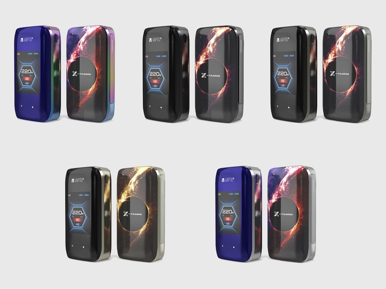 X-Hubble получил лёгкий глянцевый корпус в форме мыльницы, необременённой лишними кнопками, а также острыми углами и резкими гранями. В соответствии с названием, устройство украсили разнообразными космическими пейзажами, доступными в пяти вариациях. Компактный двухаккумуляторный боксмод отличился возможностью весьма быстрой зарядки током в 3А, функциональной платой на 220 ватт и широким цветным дисплеем с сенсорным интерфейсом.