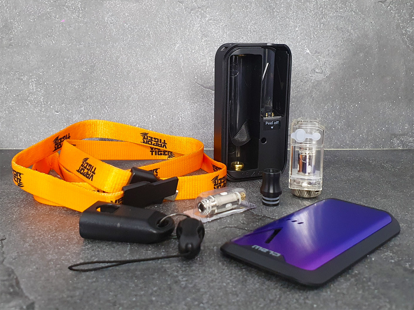 16 марта молодая индонезийская компания Vapor Tiger представила в инстаграме своё дебютное устройство — Claw Pod Kit. Универсальный под-мод облачили в портативную прямоугольную форму со скругленными углами. Лёгкий чёрный каркас изготовили из термостойкого пластика и украсили съёмными разноцветными панелями из аналогичного полимера. В палитру расцветок включили четыре цветовые комбинации. На узкой стороне разместили круглую кнопку fire, пару узких прорезей, клавишу переключения с набором индикаторов и USB-порт. Боковины перфорировали крупными буквами V для отслеживания уровня жидкости. Верхнюю площадку увенчали приталенным 510-м дриптипом, а также снабдили креплением для ремешка, между тем, выполняющего функцию зарядного кабеля.