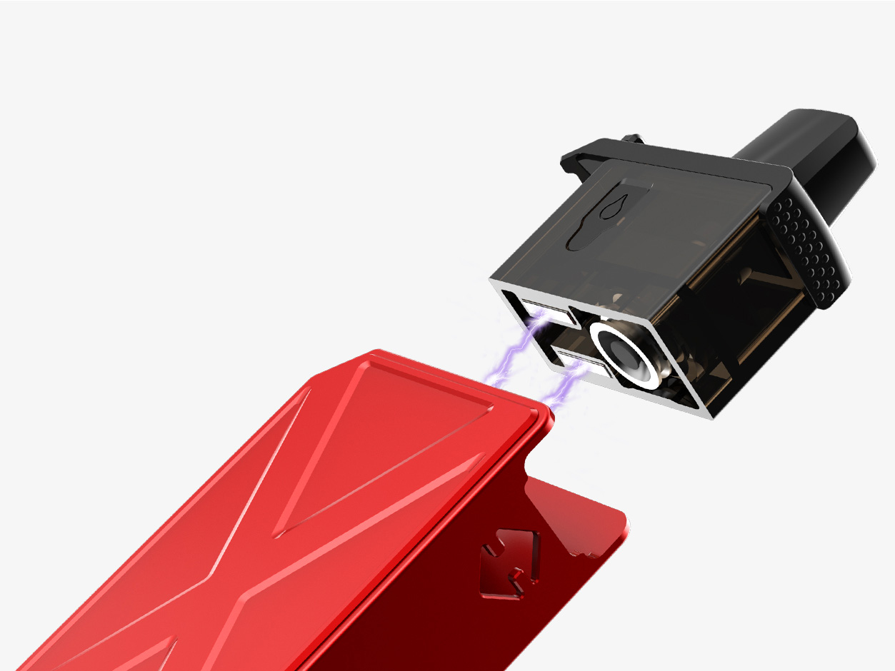Работа устройства осуществляется за счёт интегрированной батареи с запасом в 1200 мАч, для полного заряда понадобится 1,4 часа. Активацию можно реализовать как посредством нажатия кнопки, так и при затягивании. Мощность регулируется в диапазоне от 7 до 50 ватт. Аналогичным образом настраивается интенсивность обдува. Съёмный картридж поддерживает обслуживаемую базу под одну спираль, а также четыре вида испарителей под разные стили парения. Однако, в базовый набор войдут только два экземпляра. Резервуар фиксируется при помощи мощного магнитного коннектора. Бак заправляется через боковую стенку и вмещает 2 либо 3 мл в зависимости от версии.