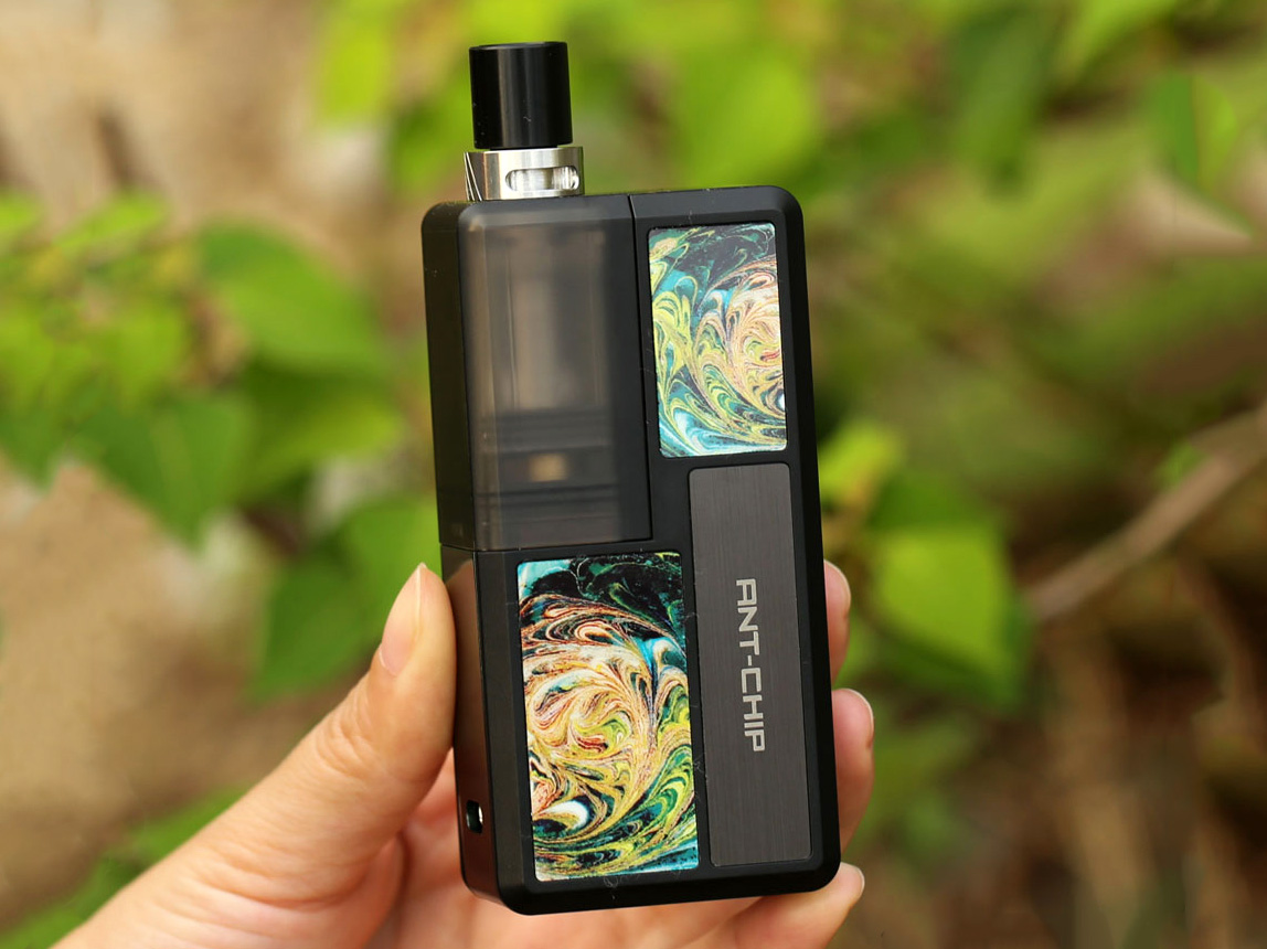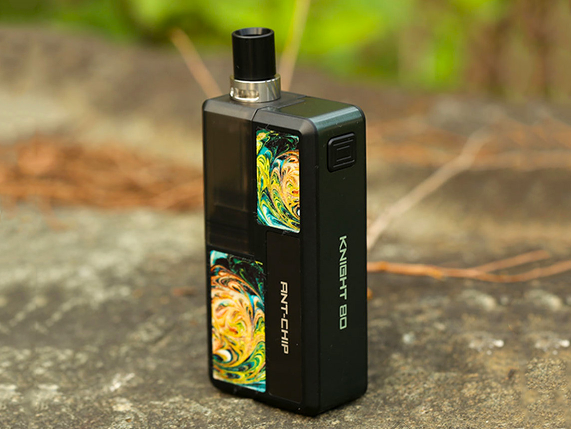 28 марта компания Smoant представила на странице в фейсбуке стартовый набор — Knight 80 Pod Mod. Компактный под-мод получил прямоугольный цинковый корпус с открытым полупрозрачным картриджем. На выбор предоставили пять окрасок, сочетающих в себе разные полимерные вставки и металлические оттенки каркаса. Широкую лицевую сторону укомплектовали панелью управления, состоящей из монохромного дисплея и двух клавиш регулировки. На обороте зафиксировали магнитную панель, отвечающую за доступ к аккумулятору. Кнопку активации разместили на верхушке торца. USB-порт отправили на основание противоположной боковины. 510-й дриптип подпоясали вращающимся кольцом.