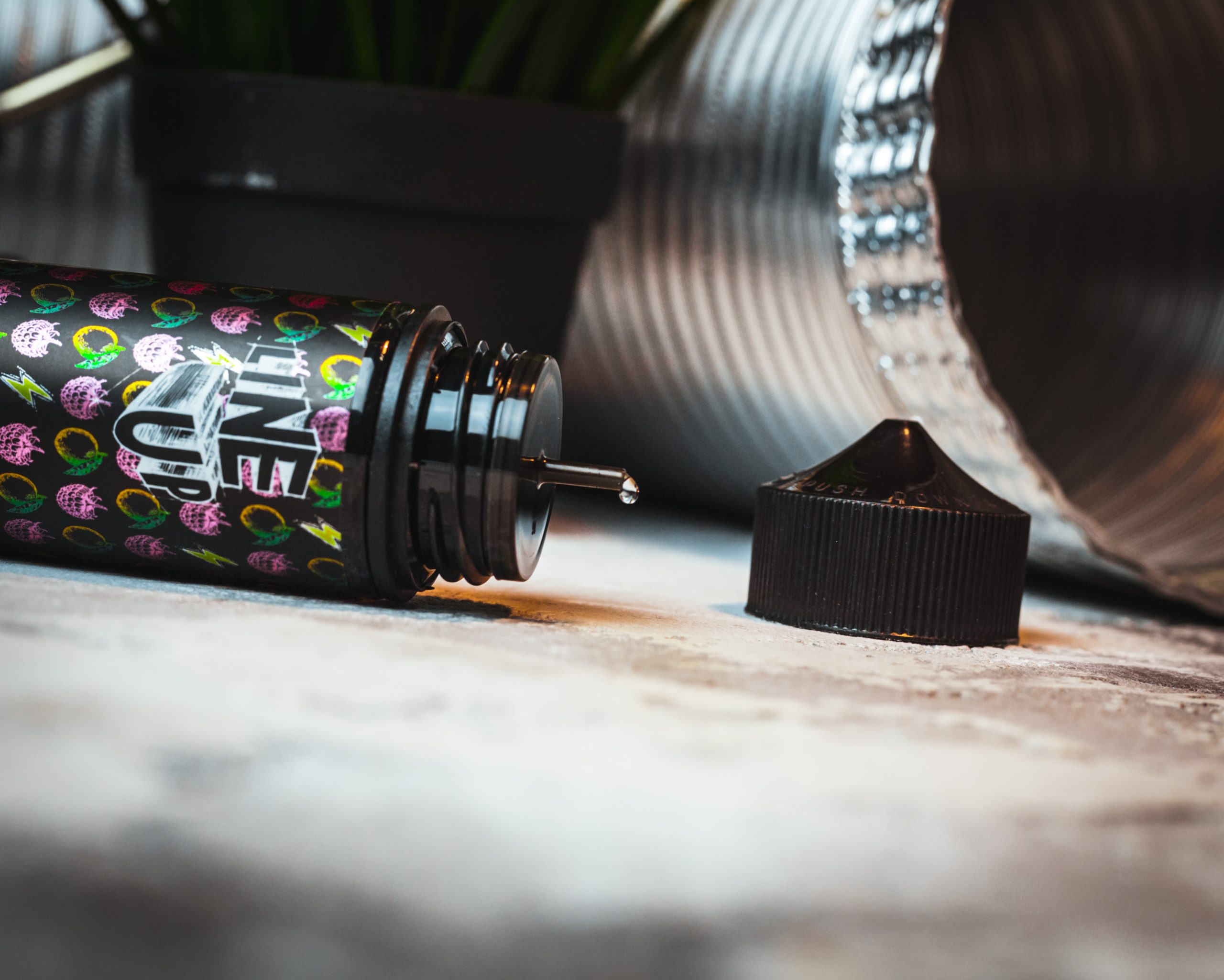 Жидкость приезжает в тактильно приятных картонных коробках. Оформление зависит от выбранного микса. На лицевой стороне расположены логотип линейки и название компании разработавшей микс. С тыльной стороны находятся расшифровка вкуса, состав, предупреждения, баланс и юридические данные производителя. Информация о содержании никотина и объем тары размещены на крышке. Штрихкод – на противоположенной стороне. Дата производства и срок годности помещены на этикетку флакона.
