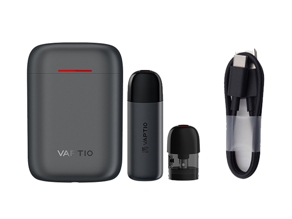 Компания Vaptio выпустила набор AirGo PCC Kit. Он состоит из бескнопочного мода, а также компактного зарядного кейса с батареей на 700 мАч и запасным картриджем.