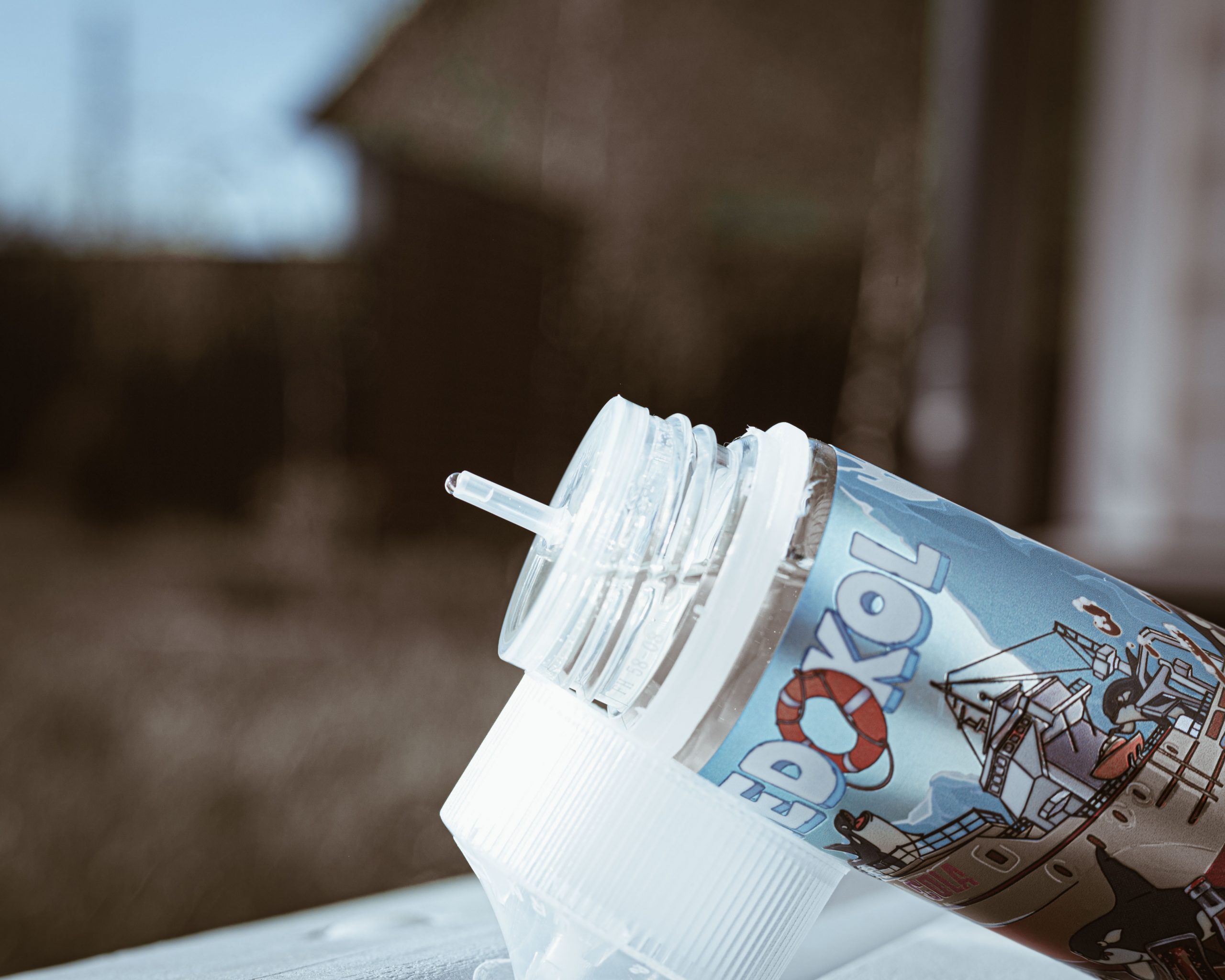 Внутри — флаконы формата Chubby Gorilla V3 объемом 100 миллилитров. Крышки имеют стандартные защиты от детей и контроль первого вскрытия. Этикетки — матовые с тактильным лаком. Стиль оформления и информация дублированы с упаковки, а также добавлена дата производства. Рядом с жидкостью лежит маленькая упаковка ваты.