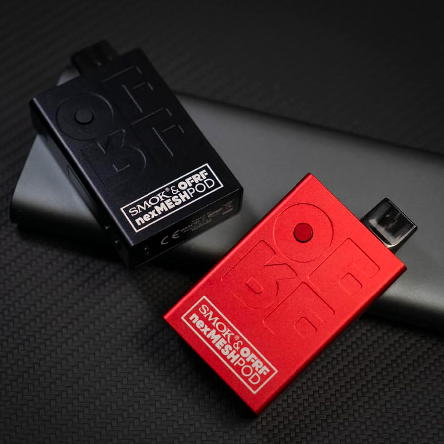 8 мая компания Smok представила на странице в фейсбуке стартовый набор — nexMesh Kit, разработанный в коллаборации с OFRF. Под-систему наделили строгим прямоугольным силуэтом с довольно миниатюрными габаритами и весьма лёгким весом за счёт алюминиевого сплава в качестве основного материала. Палитру окрасок разнообразили шестью вариантами. Узкую лицевую сторону укомплектовали монохромным дисплеем и парой регулировочных клавиш. Круглую кнопку активации гармонично интегрировали в букву тиснёного логотипа на широком торце. На обороте сделали оригинальную сеточную панель. USB-порт спрятали снизу. Окна для контроля жидкости в картридже не предусмотрели.