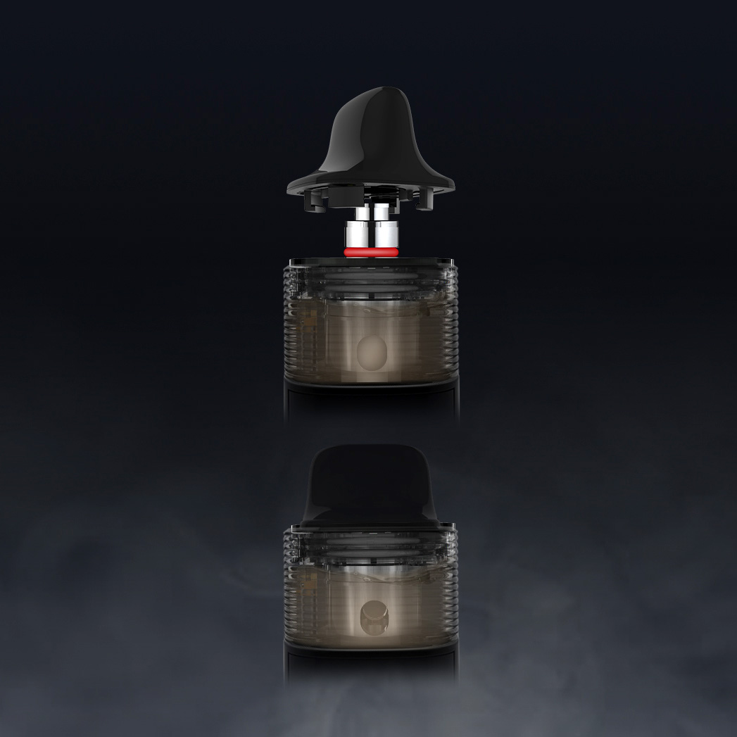 За безопасность девайся отвечает регулируемая плата с лаконичным цветным интерфейсом и максимальной мощностью в 75 ватт. В качестве элемента питания используется внешняя батарея формата 18650. Для быстрой зарядки током в 1,5А предусматривается USB Type-C. Картридж можно обслуживать не извлекая из устройства. База под сменный испаритель, а также герметичный заправочный клапан находятся сверху, сразу под дриптипом. В базовой комплектации имеются два испарителя из новой одноимённой линейки — на 0,35 и 0,15 Ом. Объём резервуара составляет 4,5 мл.