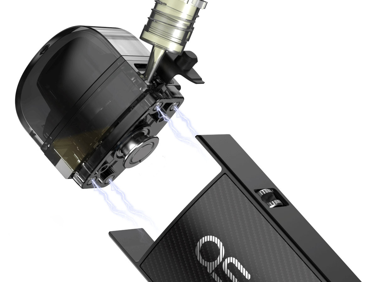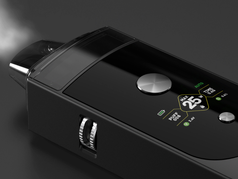 Портативный девайс располагает полноценным цветным интерфейсом и солидным диапазоном мощности от 1 до 60 ватт. Зажигание можно осуществлять затяжкой, нажатием соответствующей кнопки либо двумя способами одновременно. В дополнение ко всему, предусматривается специальный режим Smart Auto с автоматической подстройкой мощности под намотку. Питание обеспечивает интегрированная батарея на 1400 мАч. Быстрая зарядка осуществляется через USB Type-C током в 2А. Магнитный картридж комплектуется двумя быстросменными испарителями из серии BP на 0,3 и 0,6 Ом, под свободный либо сигаретный стиль парения. Объёмный резервуар может уместить 5 мл жидкости. Заправочный слот находится на боковой стенке бака.