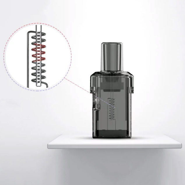 Устройство поддерживет два режима работы — первый выдает максимальное напряжение в зависимости от запаса батареи, второй ограничивается напряжением в 3 вольт. Переключение осуществляется тройным нажатием кнопки зажигания. Каждые пятнадцать затяжек отмечаются вибрацией. Емкость интегрированной батареи составляет 800 мАч. Уровень оставшегося заряда отображается соответствующим количеством индикаторов. Сменный картридж комплектуется натуральным хлопком и канталовой намоткой с сопротивлением в 1,2 Ом. Резервуар обладает стандартным объемом в 2 мл. Заправочное отверстие находится сбоку, за откидной заглушкой.