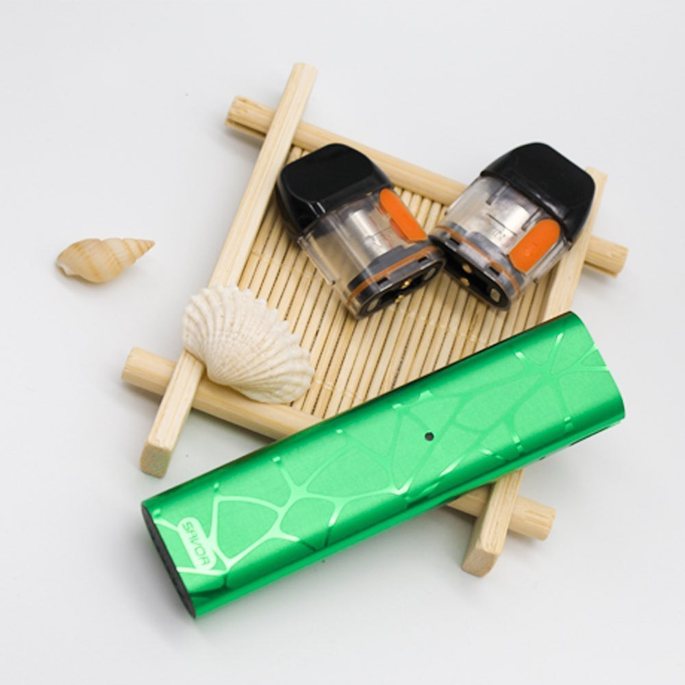 3 июня компания AAA Vape представила на странице в фейсбуке набор для новичков — Savor Pod Kit. Под-систему исполнили из лёгких термостойких полимеров в привычном миниатюрном стиле без кнопок. На выбор предоставили шесть цветовых вариаций. Узкий монотонный корпус украсили контрастными узорами. Лицевую сторону отметили скромным логотипом и укомплектовали индикатором заряда. По бокам вырезали маленькие воздухозаборные перфорации, а также предусмотрели прорези для контроля жидкости в баке. USB-порт отправили на торец.