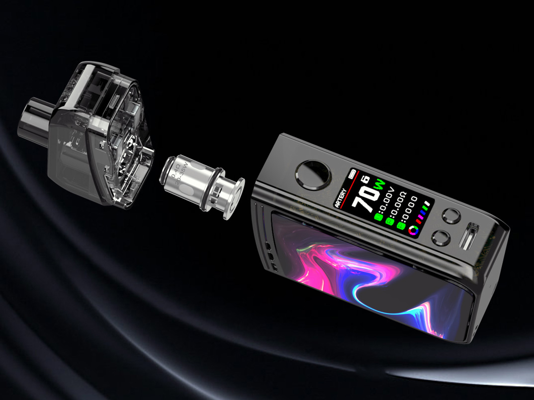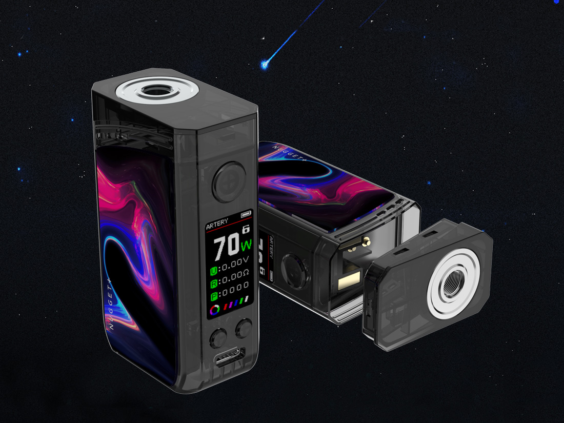 Компания Artery выпустила Nugget + Pod Kit. Это прозрачный многофункциональный под-мод с максимальной мощностью в 70 ватт, регулируемым обдувом, а также сменным коннектором для полноценных баков и дрипок.