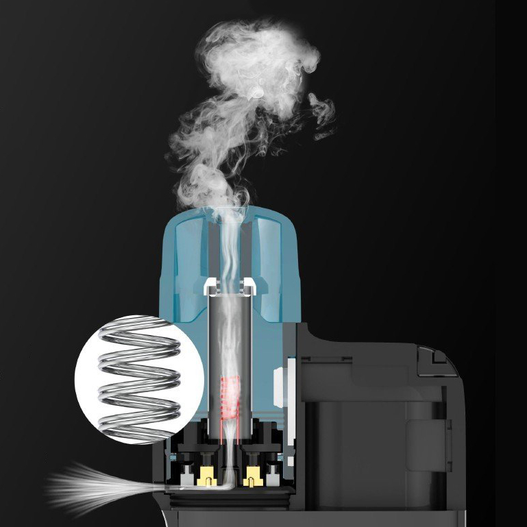 Не смотря на внешнюю лаконичность, устройство обладает довольно продвинутой платой CTAP 2.0. Предусматриваются два уровня мощности — на 12 либо 15 ватт, возможность работы во время зарядки, а также автоматический температурный контроль и распознавание намотки. За питание отвечает интегрированная батарея на 800 мАч. Для полного заряда током в 1,5А достаточно 40 минут. В запасе предусматривается пара сменных картриджей. Оба обладают полупрозрачным герметичным баком на 1,8 мл и магнитным коннектором, но отличаются встроенными испарителями. Один вариант реализует сопротивление в 1,1 Ом, подходящее для сигаретной затяжки и жидкостей с солевым никотином, другой поддерживает 0,8 Ом для более привычной манеры парения.