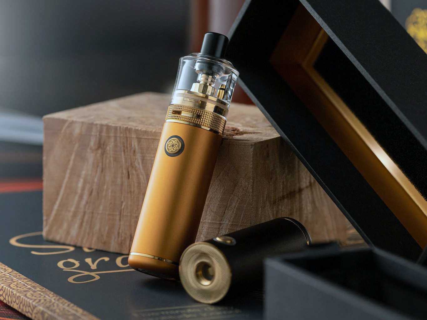 Бак отличается монолитным куполом из ударостойких полимеров и яркой стальной базой с зернистой поверхностью. Фиксация резервуара на необслуживаемой базе осуществляется посредством байонетного соединения с тремя подшипниками. В запасе предусматриваются два сменных испарителя на 1,0 и 0,4 Ом. Объём составляет 2 мл. Герметичный заправочный клапан скрывается на дне. Имеется привычное кольцо для настройки затяжки. Сверху можно установить один из двух 510-х дриптипов под разные стили парения.