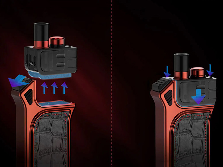 7 июля в ряде интернет-магазинов появилась оригинальная под-система — Mag Pod Kit, разработанная китайской компанией Smok. Корпус устройства оформили в виде удобной рукоятки с анатомическим силуэтом и кожаной отделкой. Выбор ограничили пятью цветовыми комбинациями, отличающимися только оттенками металлического каркаса. Лицевую сторону заняла изогнутая кнопка fire с небольшим эргономичным упором. Противоположную часть стилизовали под пистолетный курок, отвечающий за фиксацию картриджа. Сбоку пристроили глянцевую панель управления, состоящую из дисплея и пары регулировочных клавиш. Верхушку увенчали съёмным 510-м дриптипом и скручивающейся заправочной крышкой.