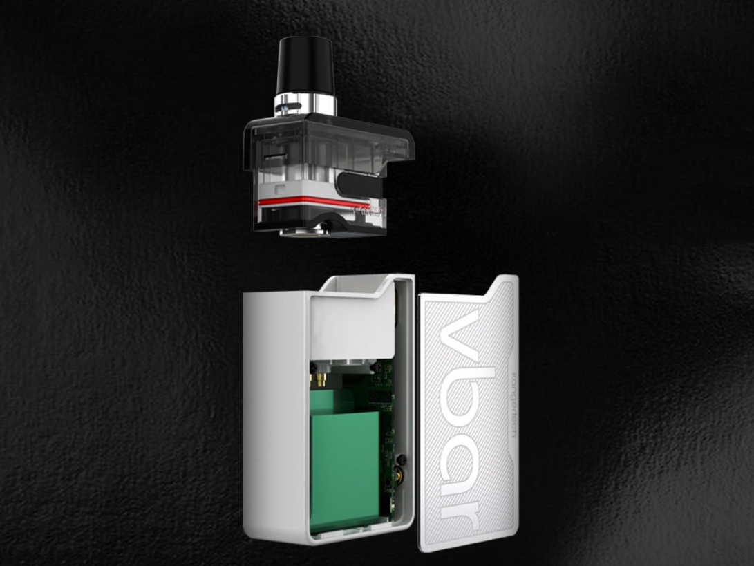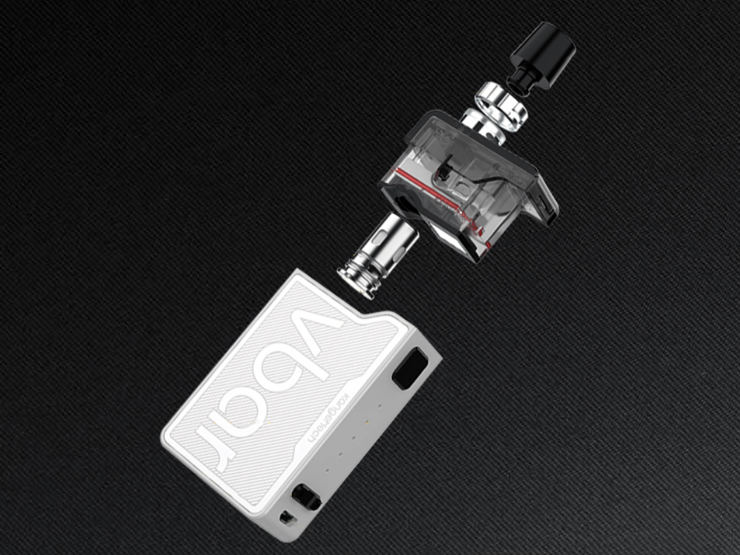27 сентября компания Kangertech анонсировала в инстаграме универсальную под-систему — Vbar Pod Kit. Устройство упаковали в компактный комбинированный корпус из лёгкого сплава и термостойкого пластика. На выбор предоставили лишь два варианта окраса — чёрный и белый. Прямоугольный корпус облагородили скругленными углами и увенчали съёмным дельриновым мундштуком, подпоясанным вращающимся воздушным кольцом. На узком фасаде предусмотрели стандартную панель управления, собранную из трёх кнопок, набора индикаторов и USB-порта. Съёмный картридж обеспечили прозрачными стенками, не препятствующими отслеживанию жидкости в резервуаре.