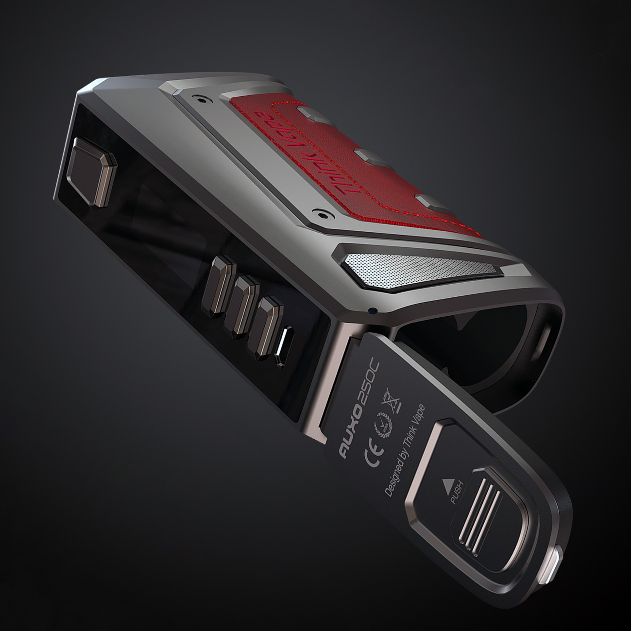 16 сентября компания Think Vape анонсировала на странице в фейсбуке оригинальный девайс — Auxo DNA 250C Box Mod. Многофункциональному боксмоду дали добротный цинковый корпус с подточенным прямоугольным силуэтом и относительно компактными габаритами. Серый металлический каркас украсили эргономичной обрамлённой панелью из рециклированной кожи, фиксирующейся при помощи четырёх шестигранных винтов. На выбор предоставили пять разнообразных цветовых комбинаций. Просторную посадочную площадку сместили к тыльной стороне и дополнили протоками, защищающими от прикипания. Фасад снабдили привычным набором, состоящим из из кнопки активации, дисплея, трёх клавиш управления и USB-порта. Доступ к батареям ограничили откидной крышкой, скрывающейся на дне корпуса.