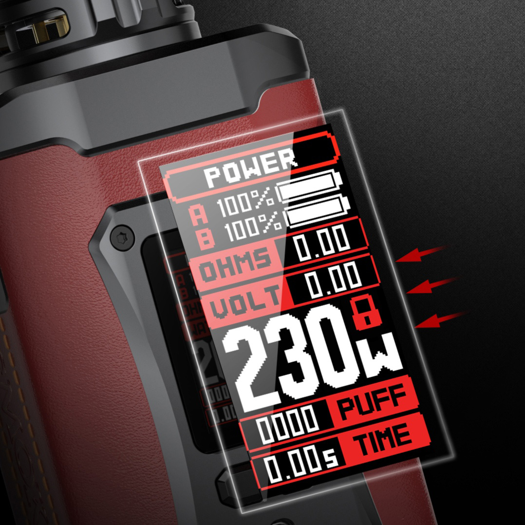 Девайс управляется функциональной платой IQ-S Chip, предусматривающей высокую скорость отклика в 0,001 с, вариватт с диапазоном от 1 до 230 ватт и температурный контроль. Сопротивление может составлять от 0,05 до 2,5 Ом. Для работы потребуется пара аккумуляторов формата 18650. Осуществить обновление прошивки, а также зарядку током в 2А можно через USB Type-C.