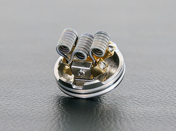 Центр базы занимает массивная платформа с четырьмя позолоченными стойками и парой прямоугольных прижимных пластин. В качестве намотки можно реализовать одну, две либо три спирали, а также сетку. За установку ножек спирали отвечают четыре наклонных слота с винтами под прямую отвёртку. Концы сетки надлежит вертикально разместить между прижимными пластинами и зажать при помощи боковых винтов с крестовыми шлицами. Помимо того, можно одновременно использовать пару спиралей и сетку. Судя по всему, предусматривается возможность замены стандартного пина на вариант для сквонка.